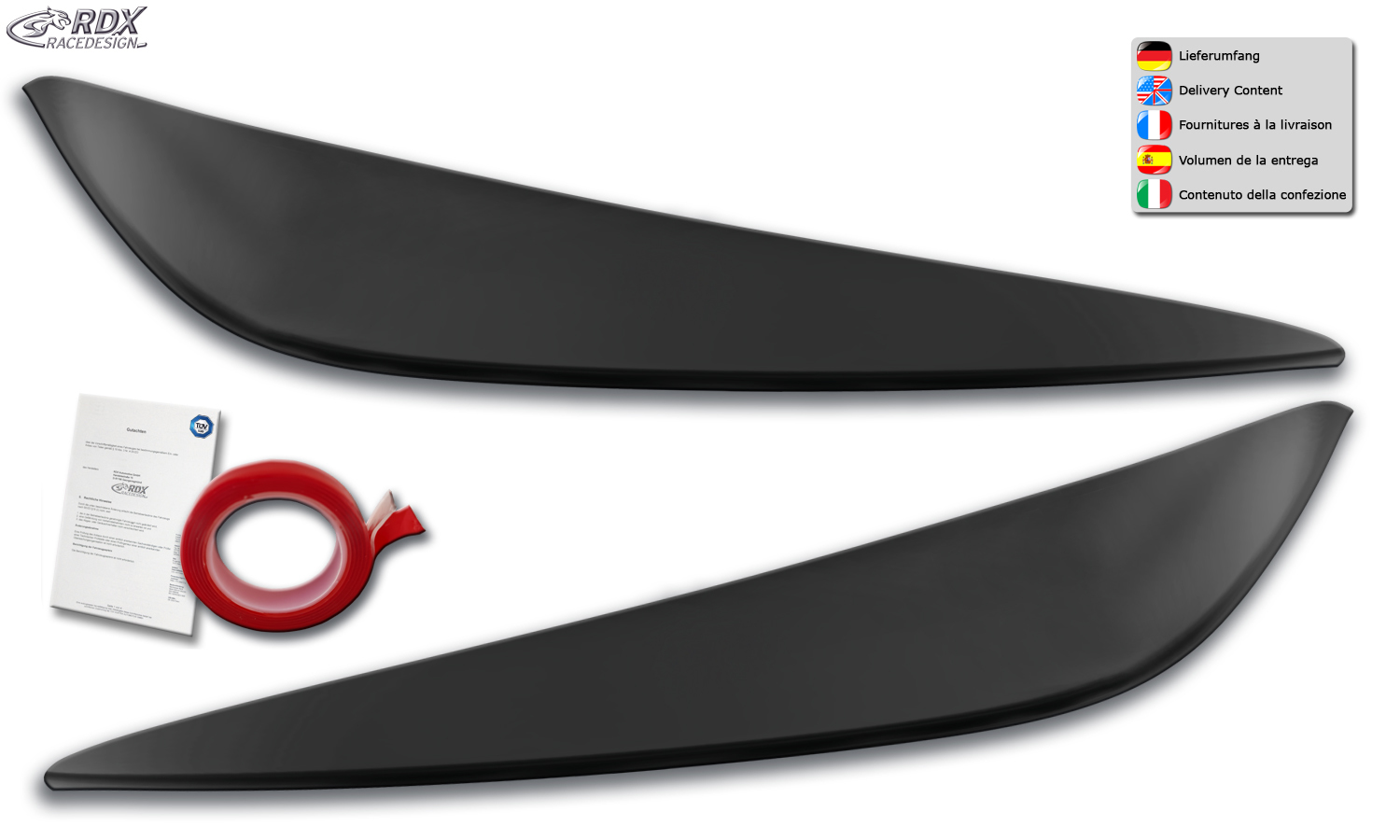 Die RDX Scheinwerferblenden passend für BMW 2er Gran Coupe F44 verleihen dem Fahrzeug einen markanten und aggressiven Look. Dank der präzisen Passform und der hochwertigen Verarbeitung aus bruch- und splitterfestem PUR/ABS Kunststoff sorgen die Blenden für eine langlebige und stilvolle Aufwertung der Frontansicht. Durch die unauffällige, einfache Montage mittels beiliegendem Montageklebeband ist kein Bohren oder Schrauben erforderlich. Dank TÜV-Freigabe ist das Produkt zu 100 % eintragungsfrei und bietet Ihnen legales Tuning mit überzeugender Optik.
