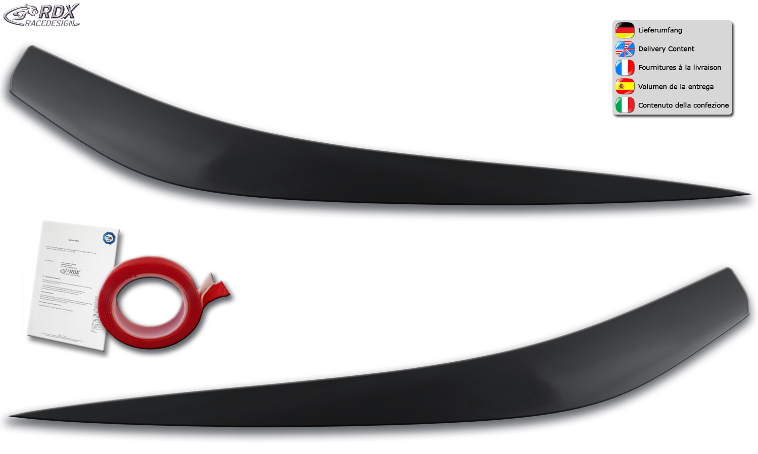 Die RDX Scheinwerferblenden passend für KIA Ceed CD und KIA ProCeed CD verleihen der Fahrzeugfront einen markanten, aggressiven Look im Stil des "Bösen Blicks". Gefertigt aus hochwertigem PUR/ABS Kunststoff, überzeugen sie durch Flexibilität, Bruch- und Splitterfestigkeit. Die unlackierte Oberfläche in schwarzer Naturfarbe ermöglicht individuelle Lackierung ganz nach Ihrem Wunsch. Dank der TÜV-Freigabe sind die Blenden vollständig eintragungsfrei und einfach zu montieren – das beiliegende Montageklebeband sorgt für sicheren Halt direkt auf dem Scheinwerferglas.