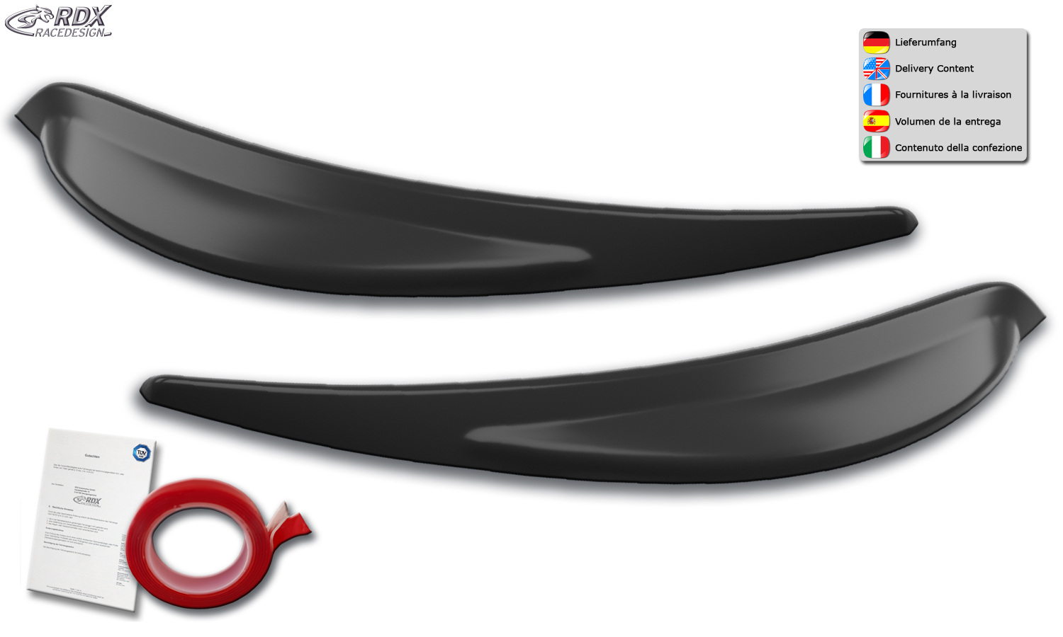 Die RDX Scheinwerferblenden verleihen Ihrem Fahrzeug den markanten „Bösen Blick“ und sorgen für ein sportliches, individuelles Erscheinungsbild. Die Blenden sind aus hochwertigem PUR/ABS Kunststoff gefertigt, was sie besonders flexibel sowie bruch- und splitterfest macht. Dank der unlackierten schwarzen Oberfläche haben Sie volle Freiheit bei der individuellen Lackierung – ob passend zur Fahrzeugfarbe oder als kontrastierendes Design-Element. Die Montage der Scheinwerferblenden ist mühelos: Sie erfolgt einfach über das beiliegende Montageklebeband direkt auf dem Scheinwerferglas. Für maximale Sicherheit und Komfort sind die Blenden TÜV-frei und somit ohne Eintragung im Straßenverkehr zulässig.