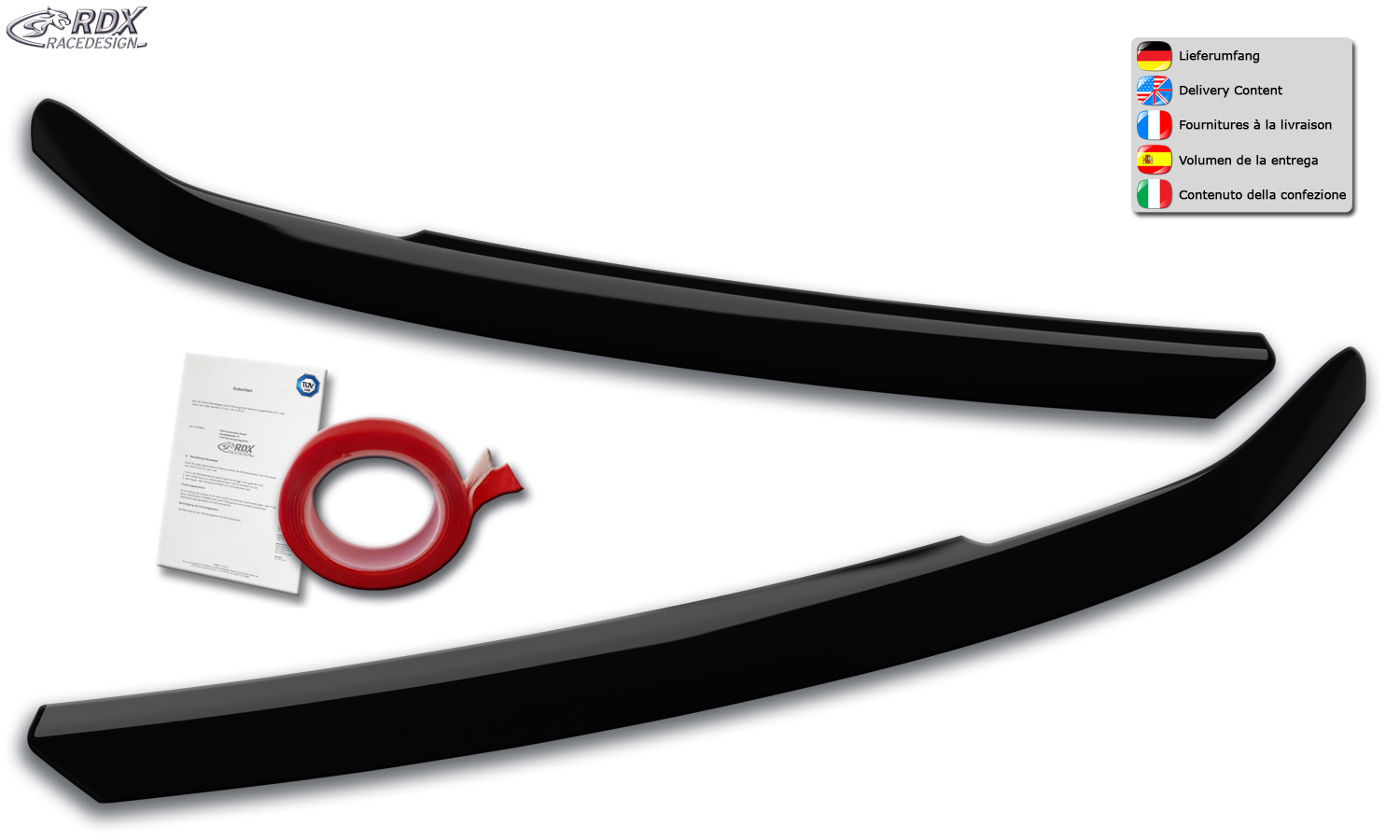 Die RDX Scheinwerferblenden passend für Audi A6 4K C8 2F verleihen der Frontpartie Ihres Fahrzeugs einen markanten, sportlichen Look. Gefertigt aus hochwertigem PUR/ABS Kunststoff überzeugen die Blenden durch Flexibilität, Bruchfestigkeit und eine langlebige Qualität. Die schwarze Hochglanz-Oberfläche ist anbaufertig vorbereitet und sorgt für ein elegantes Finish. Dank der einfachen Montage mit beiliegendem Montageklebeband können Sie die Blenden ohne großen Aufwand selbst anbringen. Zudem sind die RDX Scheinwerferblenden TÜV-frei und zu 100% eintragungsfrei – perfekt für individuelles Autotuning mit Stil.