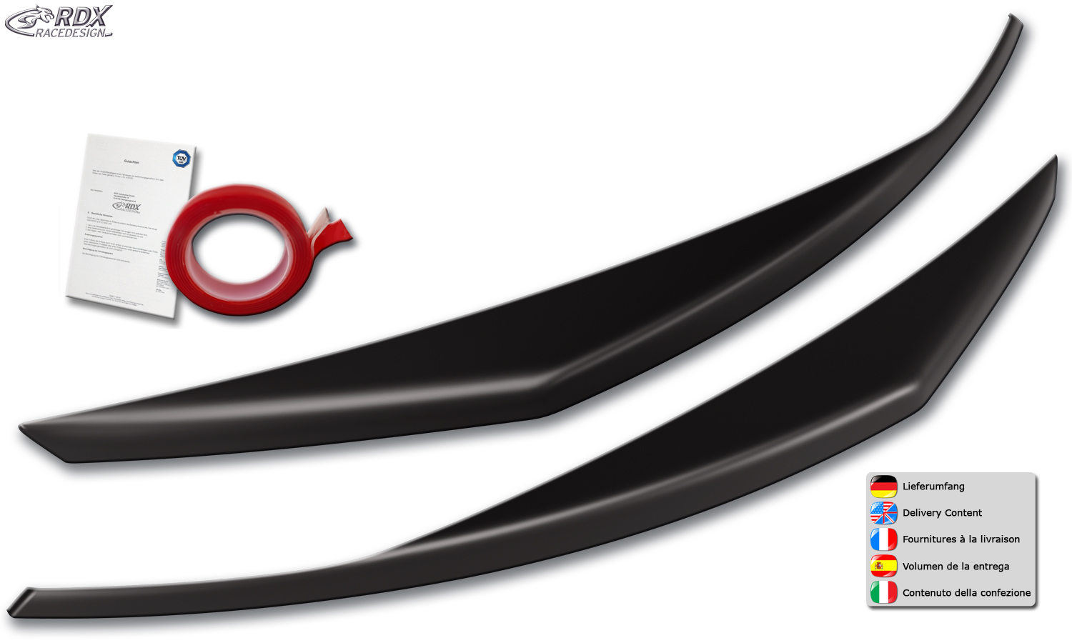 Die Montage erfolgt schnell und unkompliziert mit dem beiliegenden doppelseitigen Montageklebeband – ganz ohne Bohren oder Spezialwerkzeug. Die RDX Scheinwerferblenden sind TÜV-geprüft und zu 100 % eintragungsfrei, wodurch Sie Ihr Fahrzeug optisch aufwerten können, ohne zusätzliche Abnahmen durchführen zu müssen.