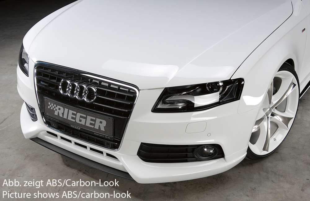 Das hochwertige Rieger Spoilerschwert passend für Audi A4 (B8/B81) Limousine 11.07–12.11 verleiht Ihrem Fahrzeug eine markante Frontoptik und sportliche Straßentauglichkeit. Gefertigt aus robustem ABS-Material, ist das Spoilerschwert mittig ausgeführt und bietet eine exakte Passform ohne aufwendige Anpassungsarbeiten. Wählen Sie zwischen den stilvollen Varianten Matt Schwarz und Carbon Look, um den Look Ihres Fahrzeugs individuell zu gestalten. Dank der beiliegenden ABE entfällt eine Eintragung, wodurch der Einbau noch unkomplizierter wird. Bitte beachten Sie, dass die ABE nur in Kombination mit den Rieger Spoilerstoßstangen verwendet werden darf. Rieger liefert das Spoilerschwert unlackiert (außer bei hochwertigen Finish-Ausführungen) – eine Lackierung vor der Endmontage wird empfohlen.
