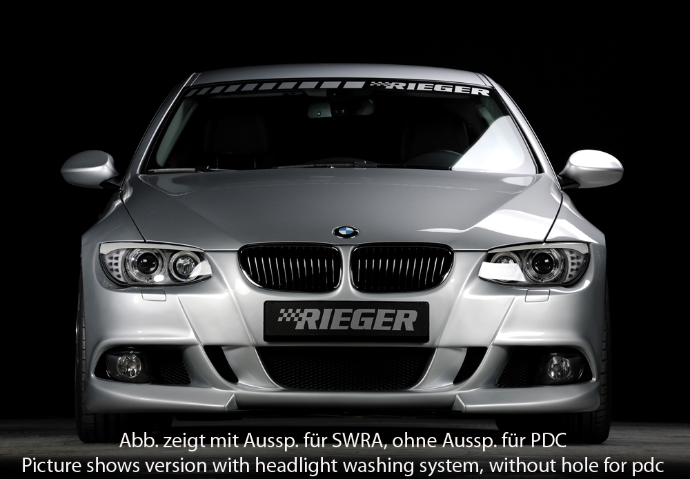 Die hochwertige Rieger Spoilerstoßstange passend für BMW 3er E93 Cabrio LCI sorgt für ein sportlicheres und dynamisches Erscheinungsbild Ihres Fahrzeugs. Gefertigt aus robustem ABS-Material garantiert sie eine exakte Passform und hohe Stabilität. Dank beiliegender ABE ist die Stoßstange eintragungsfrei und somit schnell einsatzbereit. Das Set enthält ein passgenaues Alugitter sowie sämtliches Montagezubehör für eine sichere Befestigung. Bitte beachten Sie, dass die Montage dieser Stoßstange aufgrund des höheren Anpassungsaufwands gegenüber einer serienmäßigen Frontschürze von erfahrenem Fachpersonal durchgeführt werden sollte. Die Stoßstange wird unlackiert geliefert und sollte vor der Endmontage lackiert werden. Varianten in ABS/schwarz-glänzend oder ABS/schwarz-matt benötigen keine zusätzliche Lackierung.