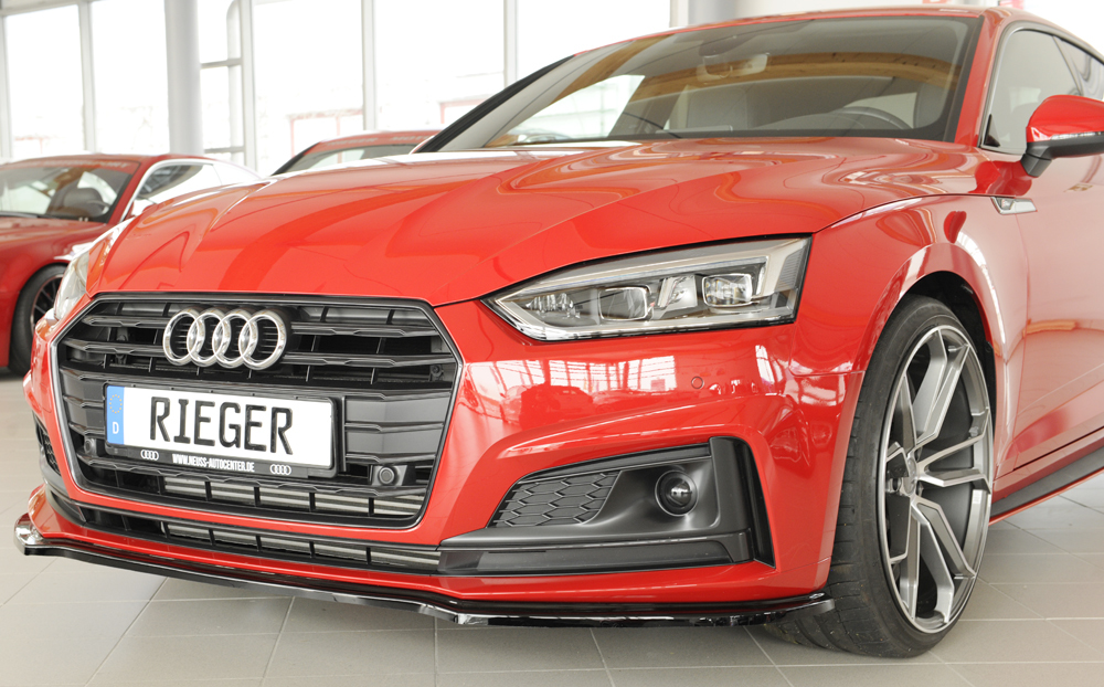 Das Rieger Spoilerschwert bietet eine sportliche und zugleich elegante Ergänzung für die Frontpartie Ihres Fahrzeugs. Gefertigt aus hochwertigem ABS-Material überzeugt das Spoilerschwert durch Stabilität, Passgenauigkeit und Langlebigkeit. Es ist speziell passend für Audi A5 S5 (B9/F5) Coupé von Baujahr 11/2016 bis 12/2019 mit S-Line Exterieur gestaltet. Das aerodynamisch optimierte Design sorgt für eine dynamische Optik und kann den Abtrieb an der Vorderachse positiv beeinflussen. Das Produkt wird mit ABE geliefert, wodurch keine zusätzliche Eintragung erforderlich ist. Erhältlich ist das Spoilerschwert in den Varianten Glanz Schwarz und Matt Schwarz. Die Ausführung in ABS/schwarz-glänzend bzw. ABS/schwarz-matt verfügt über eine hochwertige Finish-Oberfläche, die nicht mehr lackiert werden muss. Alternativ gelieferten Ausführungen sollten vor der Endmontage lackiert werden. Im Lieferumfang sind alle benötigten Montagekomponenten enthalten – somit kann die Installation einfach und effizient durchgeführt werden.