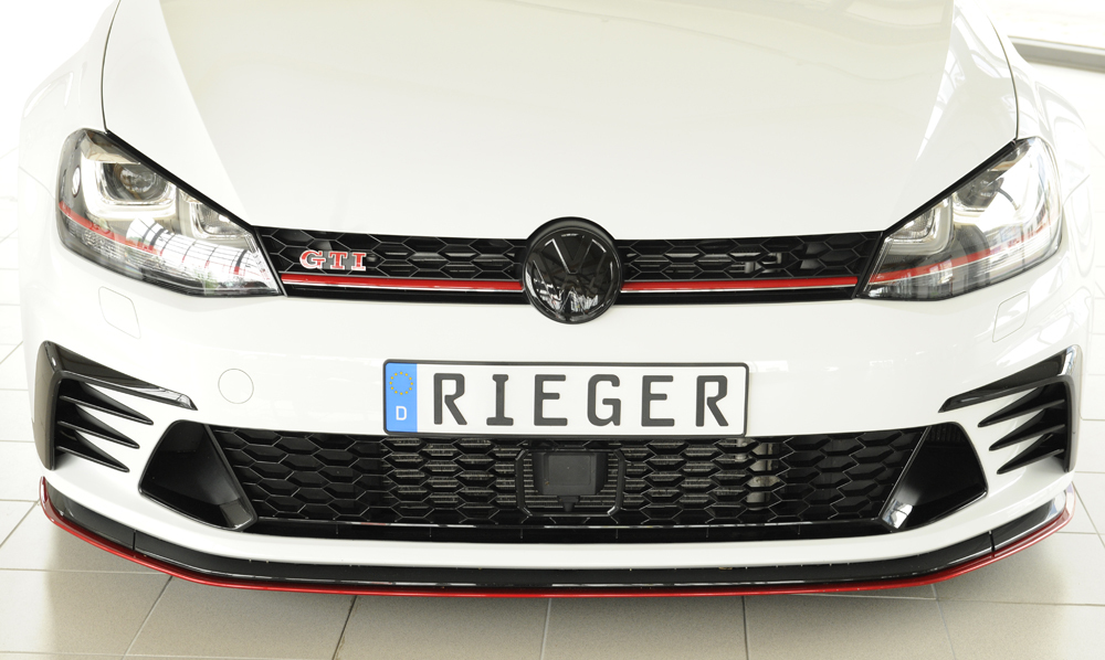 Das Rieger Spoilerschwert passend für VW Golf 7 GTI Clubsport 5-türig ab 02/2016 verleiht Ihrem Fahrzeug eine markante und sportliche Optik. Gefertigt aus hochwertigem ABS überzeugt dieses Anbauteil durch seine Stabilität, Langlebigkeit und passgenaue Verarbeitung. Das Spoilerschwert wird für die originale Frontschürze entwickelt und kann mit der beiliegenden ABE eintragungsfrei montiert werden. Das Produkt wird unlackiert geliefert und sollte vor der Endmontage lackiert werden, sofern keine Variante mit Finish-Oberfläche (z. B. schwarz-glänzend oder schwarz-matt) vorliegt. Einfache Montage dank beiligendem Zubehör und präziser Fertigung nach Rieger Qualitätsstandards.