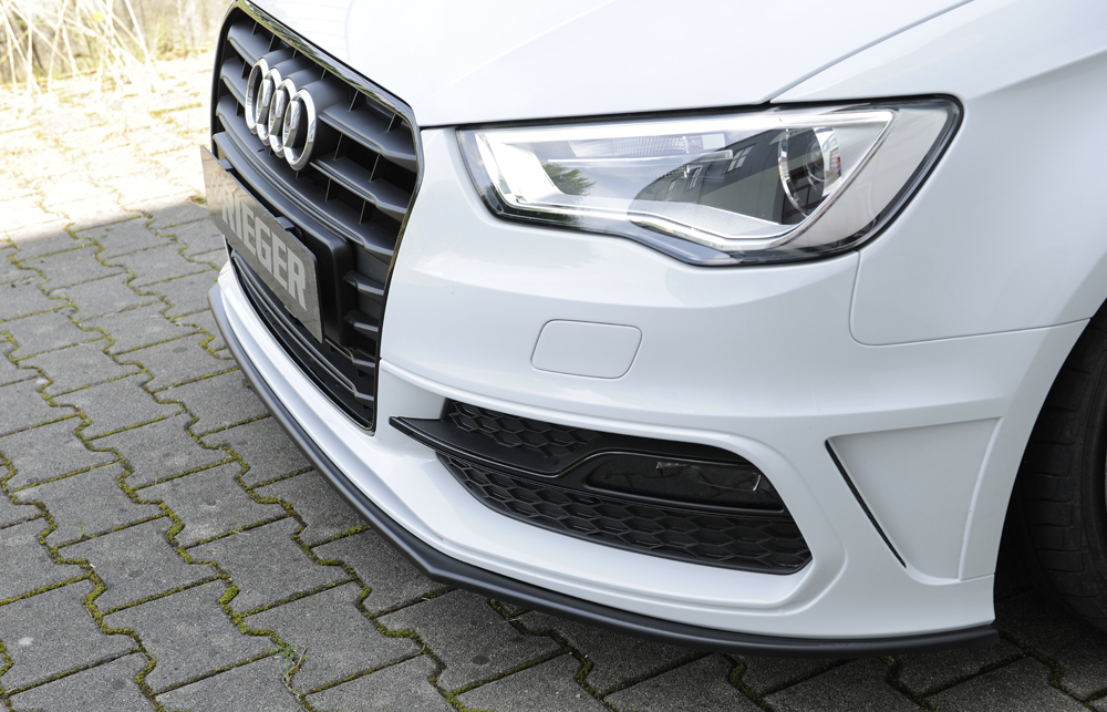Das Rieger Spoilerschwert aus hochwertigem ABS-Material wurde speziell passend für den Audi A3 (8V) Sportback entwickelt. Es überzeugt durch passgenaue Verarbeitung und sportliches Design, das die Aerodynamik des Fahrzeugs verbessert und den individuellen Charakter Ihres A3 unterstreicht. Die gerade Ausführung ist für Fahrzeuge mit original S-Line Exterieur und Frontschürze ausgelegt. Das Spoilerschwert ist wahlweise mit der Oberfläche Glanz Schwarz oder Matt Schwarz erhältlich und wird inklusive Montagezubehör geliefert. Dank mitgelieferter ABE ist das Bauteil eintragungsfrei, sodass keine zusätzliche Abnahme erforderlich ist. Bitte beachten Sie, dass Varianten mit PUR, GFK, ABS bzw. ABS/Carbon-Look unlackiert geliefert werden und vor der Endmontage lackiert werden müssen. Varianten mit einer Oberfläche in ABS/schwarz-glänzend oder ABS/schwarz-matt (Finish) sind bereits mit einer fertigen Oberfläche versehen und können direkt montiert werden.
