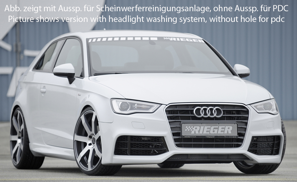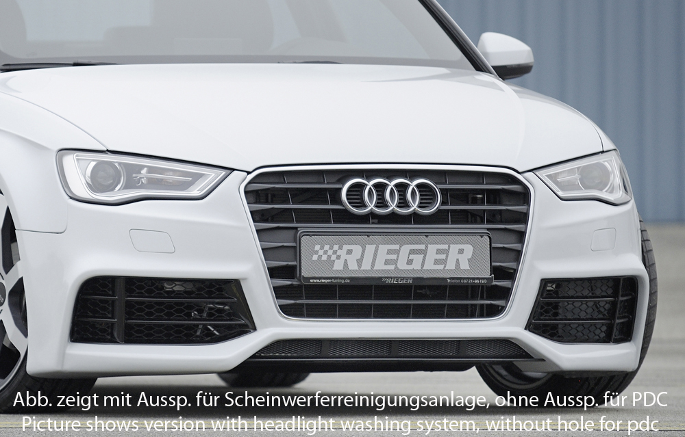 Die hochwertige Rieger Spoilerstoßstange ist speziell passend für Audi A3 S3 (8V) 3-türig entwickelt und überzeugt durch präzise Passform sowie sportliches Design. Gefertigt aus robustem ABS-Material bietet sie nicht nur eine ausgezeichnete Optik, sondern auch hohe Stabilität und Langlebigkeit. Das Produkt wird inklusive Alugitter, Montagezubehör und ABE geliefert, sodass keine Eintragung erforderlich ist.