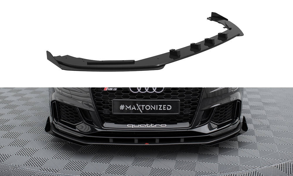 Der Street Pro Front Ansatz V.1 mit zusätzlichen Flaps verleiht Ihrem Fahrzeug eine sportlich-aggressive Optik und verbessert zugleich die Aerodynamik. Dieses hochwertige Tuningelement wurde speziell passend für Audi RS3 Limousine 8V Facelift entwickelt. Der Front Ansatz besteht aus langlebigem ABS-Kunststoff mit einer Stärke von 10 mm, wodurch er selbst stärkeren Stößen und Kratzern standhält. Durch das Fehlen von Metallelementen ist das Bauteil vollkommen korrosionsfrei.