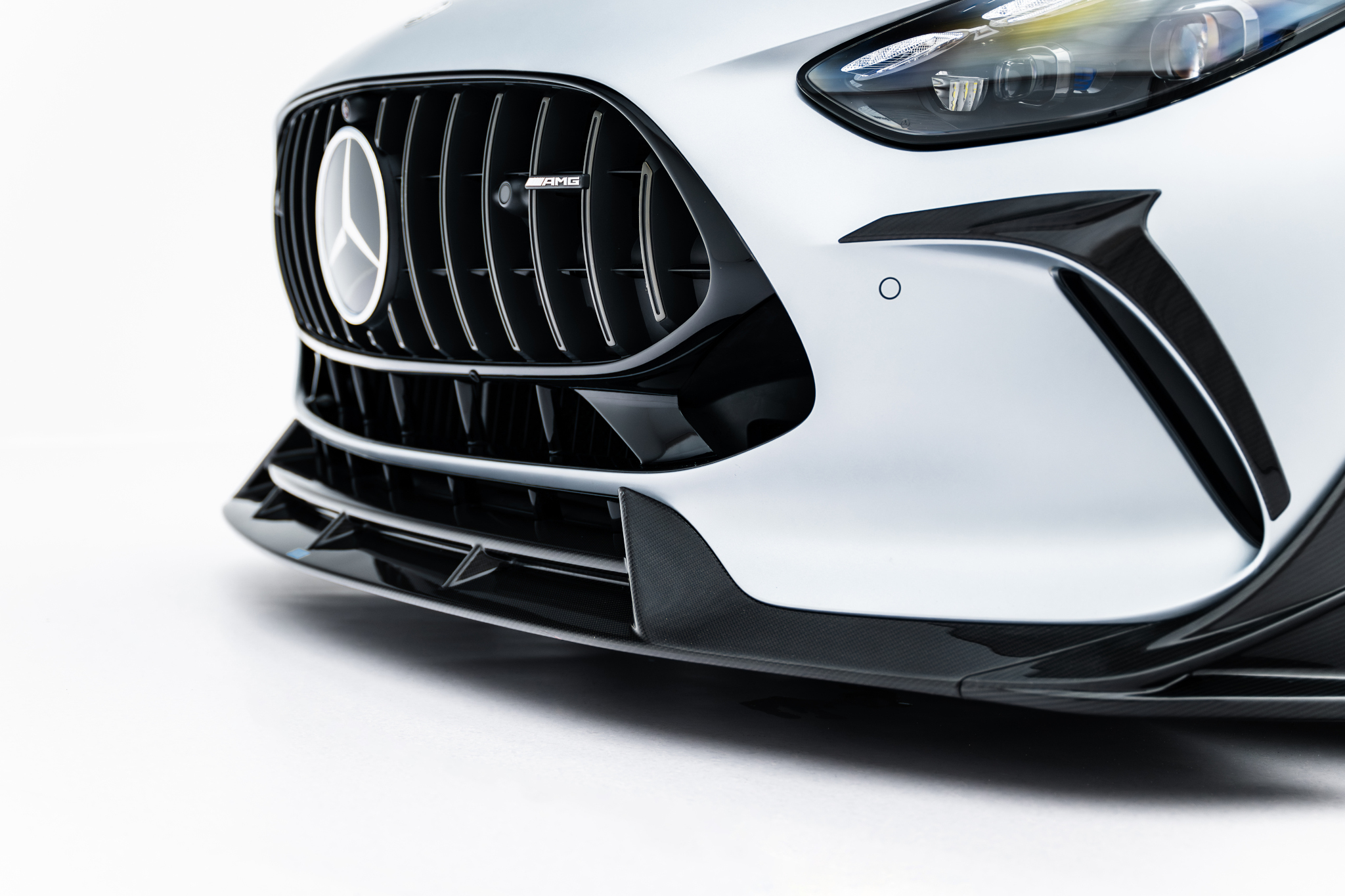 Der Prepreg Carbon Front Ansatz passend für Mercedes-AMG GT 63 / 55 / 63 S E Performance C192 verleiht Ihrem Fahrzeug ein edles und sportliches Erscheinungsbild. Gefertigt aus hochfestem Prepreg-Carbon, überzeugt dieses aerodynamische Bauteil durch außergewöhnliche Robustheit bei gleichzeitig geringem Gewicht. Carbon wird seit Jahren im Motorsport eingesetzt und optimiert die Luftführung sowie die Performance des Fahrzeugs.