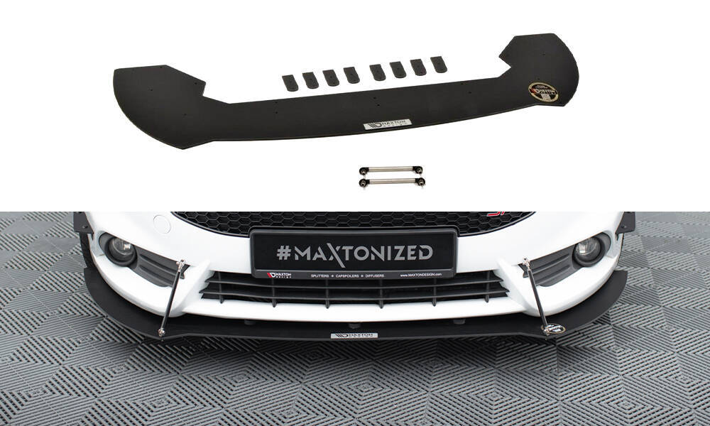 Der Front Sport Diffusor V.1 passend für Ford Fiesta ST Mk7 FL überzeugt mit einem dynamischen Design und verbessert gleichzeitig die Aerodynamik Ihres Fahrzeugs. Gefertigt aus hochwertigem ABS-Kunststoff, bietet dieser Diffusor eine perfekte Passform und hohe Stabilität. Das moderne Styling unterstreicht den sportlichen Charakter des Fiesta ST und sorgt für einen markanten Look auf der Straße. Dank des mitgelieferten Materialgutachtens und der Montageanleitung lässt sich der Einbau einfach und sicher durchführen. Der Front Ansatz für Modelle mit Koppelstangen wurde präzise entwickelt, um optimalen Anpressdruck und einen sportlichen Auftritt zu gewährleisten.