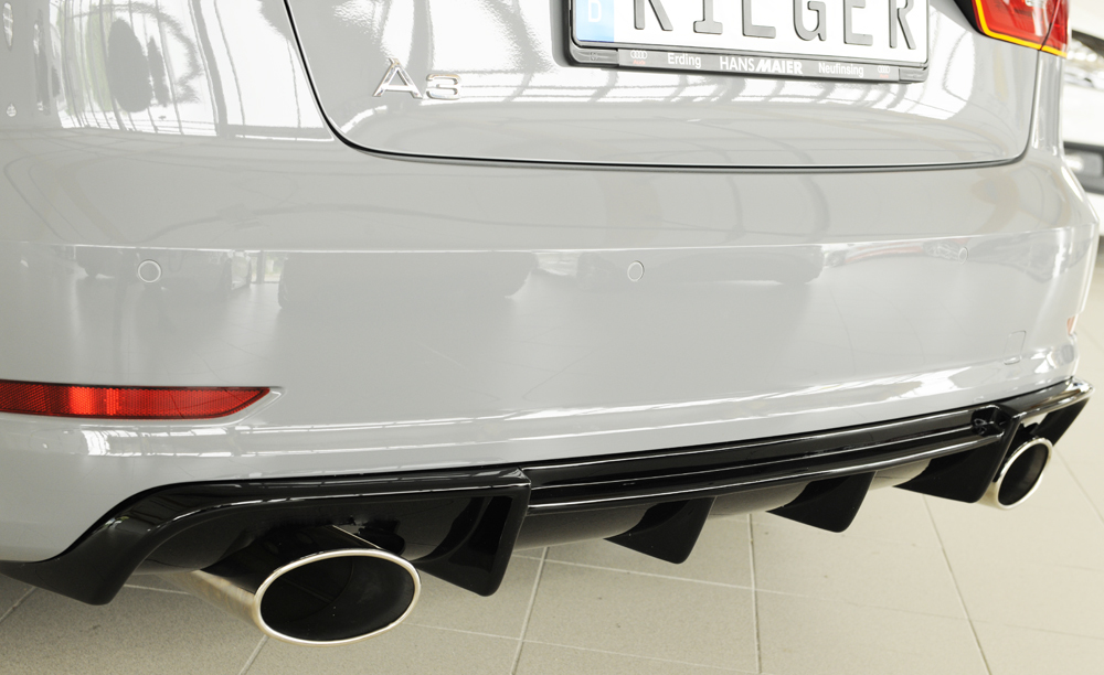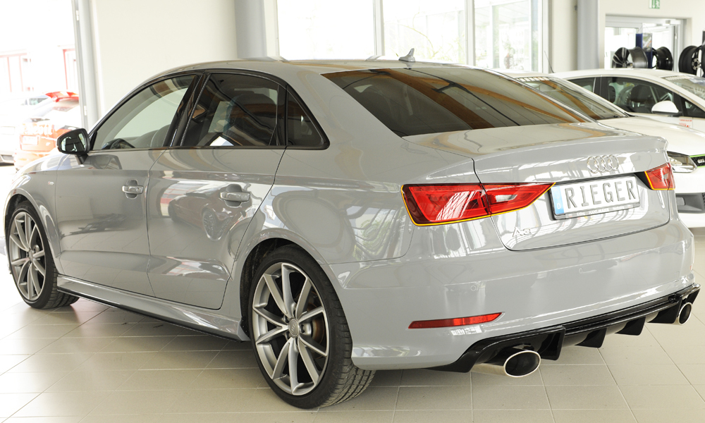 Der hochwertige Rieger Heckeinsatz bietet eine sportliche und gleichzeitig elegante Aufwertung für die Heckpartie Ihrer Limousine. Gefertigt aus stabilem ABS-Kunststoff überzeugt der Heckeinsatz durch präzise Passform und langlebige Materialqualität. Dieses Modell ist speziell passend für Audi A3 S3 (8V) Limousine 5-türig (8VS) im Bauzeitraum 05/2013 bis 08/2016 entwickelt und eignet sich für Fahrzeuge mit S-Line Exterieur.