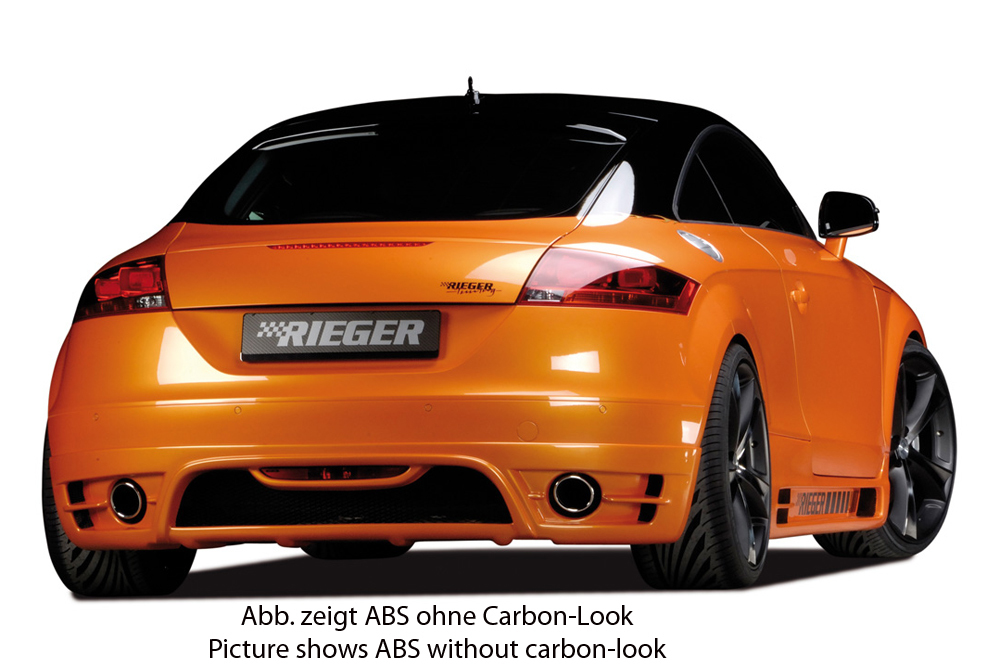 Der hochwertige Rieger Heckansatz aus robustem ABS-Material wurde speziell entwickelt, um die sportliche Linie Ihres Audi TT zu betonen und gleichzeitig eine passgenaue Montage zu gewährleisten. Dieses Aerodynamik-Element ist für Fahrzeuge ohne S-Line Exterieur konzipiert und überzeugt durch Langlebigkeit und exzellente Verarbeitungsqualität. Der Rieger Heckansatz ist für Endrohre links und rechts ausgelegt und wird inklusive Alugitter, Gutachten und Montagezubehör geliefert.