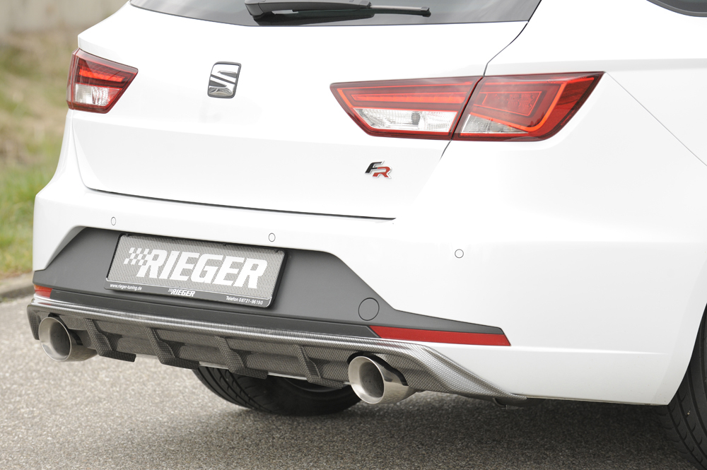 Der Rieger Heckeinsatz ist die ideale Ergänzung für das sportliche Erscheinungsbild Ihres Fahrzeugs. Aus robustem ABS gefertigt, überzeugt der hochwertige Heckeinsatz mit präziser Passform und einer eleganten Optik. Er ist speziell passend für Seat Leon FR (5F) ST/Kombi 01.13–12.16 entwickelt und lässt sich dank des mitgelieferten Montagezubehörs einfach montieren. Der Artikel ist eintragungsfrei und wird mit Gutachten geliefert.