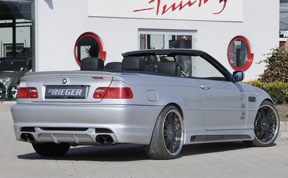 Der Rieger Heckeinsatz ist ein hochwertiger Heckschürzeneinsatz aus robustem ABS-Material, der speziell passend für BMW 3er E46 Cabrio ab Baujahr 02/2002 (Facelift) entwickelt wurde. Er verleiht dem Fahrzeugheck eine sportliche und markante Optik und verbessert gleichzeitig die aerodynamischen Eigenschaften.