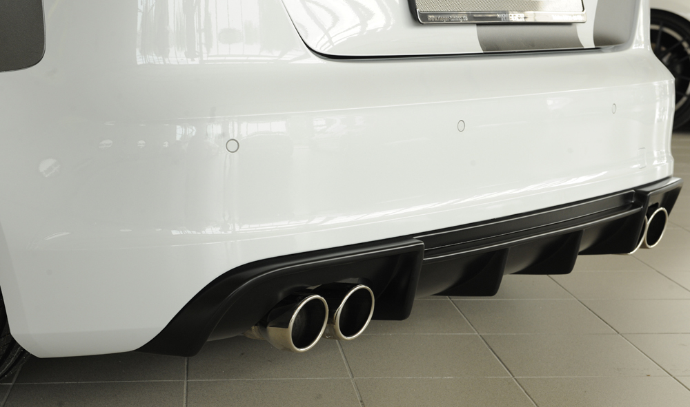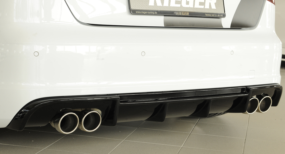 Der hochwertige Rieger Heckeinsatz Typ 88142 aus robustem ABS-Kunststoff überzeugt durch präzise Passform und sportliches Design, speziell entwickelt für die originalen Doppelendrohre links und rechts (4x90x72 mm oval). Der Heckeinsatz wird inklusive Gutachten und Montagezubehör geliefert und ist eintragungsfrei. Er ergänzt das Fahrzeugheck nahtlos und verleiht Ihrem Audi A3 S3 eine markante, sportlich-aggressive Optik. Je nach Geschmack ist der Heckeinsatz in den Varianten Glanz Schwarz oder Matt Schwarz erhältlich. Für Modelle mit S-Line Exterieur ausgelegt, sorgt das aerodynamische Design für eine unverwechselbare Optik bei gleichzeitig einfacher Montage. Die unlackierten ABS-Versionen müssen vor der Endmontage lackiert werden, während die Ausführungen mit schwarzem Finish (glänzend oder matt) montagefertig sind.
