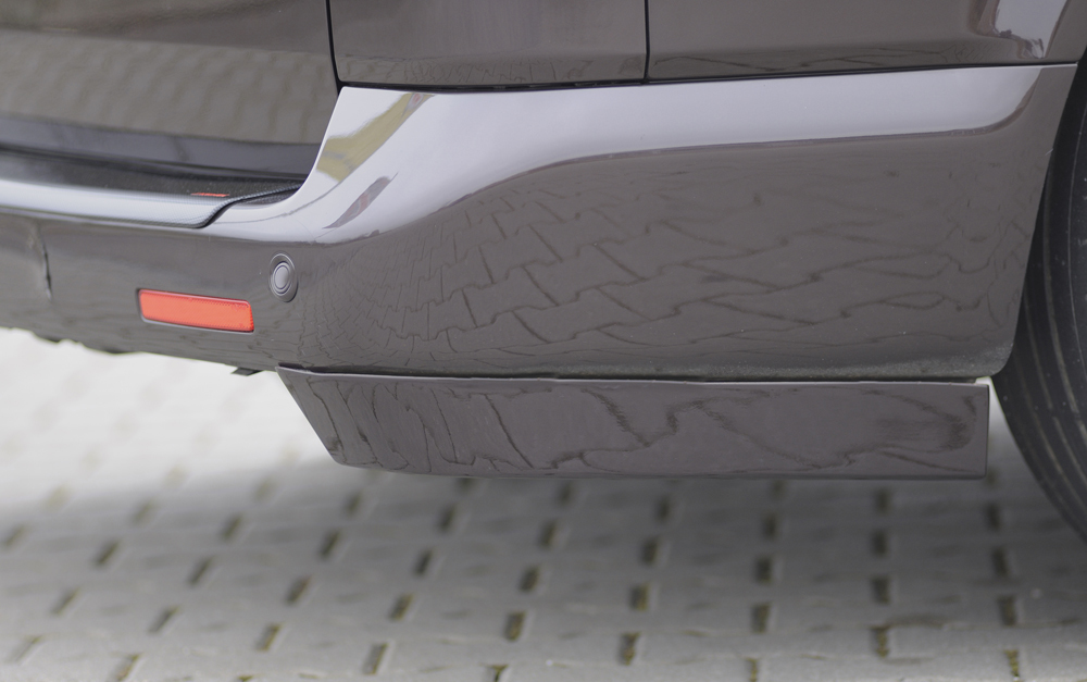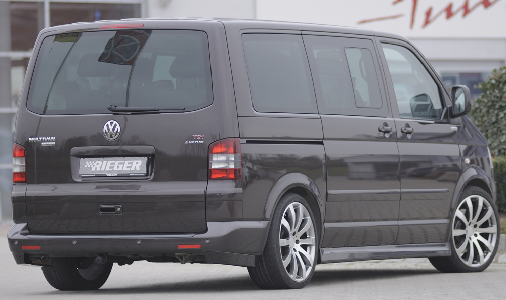 Der Rieger Heckschürzenansatz passend für VW T5 Bus ab Facelift (09/2009-) verleiht Ihrem Fahrzeug eine sportliche und individuelle Optik. Gefertigt aus hochwertigem ABS-Kunststoff überzeugt der Ansatz durch Stabilität, geringes Gewicht und perfekte Passgenauigkeit. Durch die präzise Verarbeitung fügt sich das Teil nahtlos in das originale Fahrzeugdesign ein.