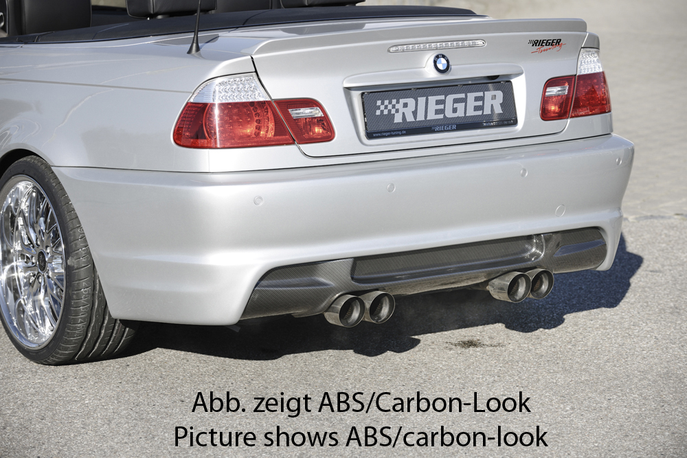 Der hochwertige Rieger Heckeinsatz verleiht dem BMW 3er E46 Cabrio (Baujahr 02/1998–12/2001, bis Facelift) ein sportliches und dynamisches Heckdesign. Gefertigt aus robustem ABS-Material überzeugt der Einsatz durch seine präzise Passform und Langlebigkeit. Er ist speziell für die Heckschürzen-Modelle 50248, 50249, 50250 und 50251 entwickelt und ermöglicht den Einbau eines Doppelendrohrs in mittiger Position.