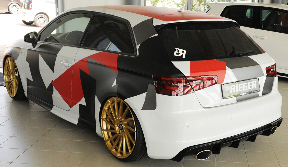 Der hochwertige Rieger Heckeinsatz aus robustem ABS wurde speziell passend für Audi A3 S3 (8V) Sportback entwickelt. Sie erhalten ein passgenaues Aerodynamik-Bauteil, das den sportlichen Look Ihres Fahrzeugs deutlich unterstreicht. Die präzise gefertigte Konstruktion sorgt für eine perfekte Integration mit dem S-Line Exterieur.