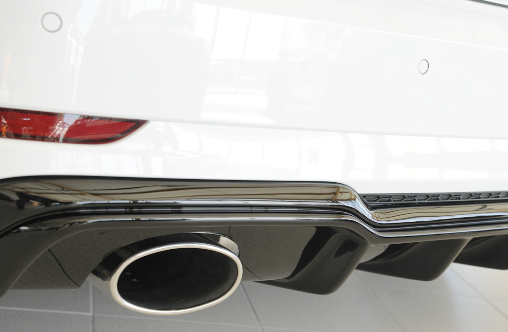 Der hochwertige Rieger Heckeinsatz wurde speziell für den Einsatz an Fahrzeugen vom Typ Audi A3 (8V) Sportback ab Facelift 2016 entwickelt. Hergestellt aus robustem ABS-Kunststoff überzeugt dieser Heckeinsatz durch präzise Passform und sportliches Design. Er ist für Fahrzeuge mit S-Line Exterieur geeignet und ermöglicht den Einbau von Sportendrohren links und rechts (152x95 mm oval).