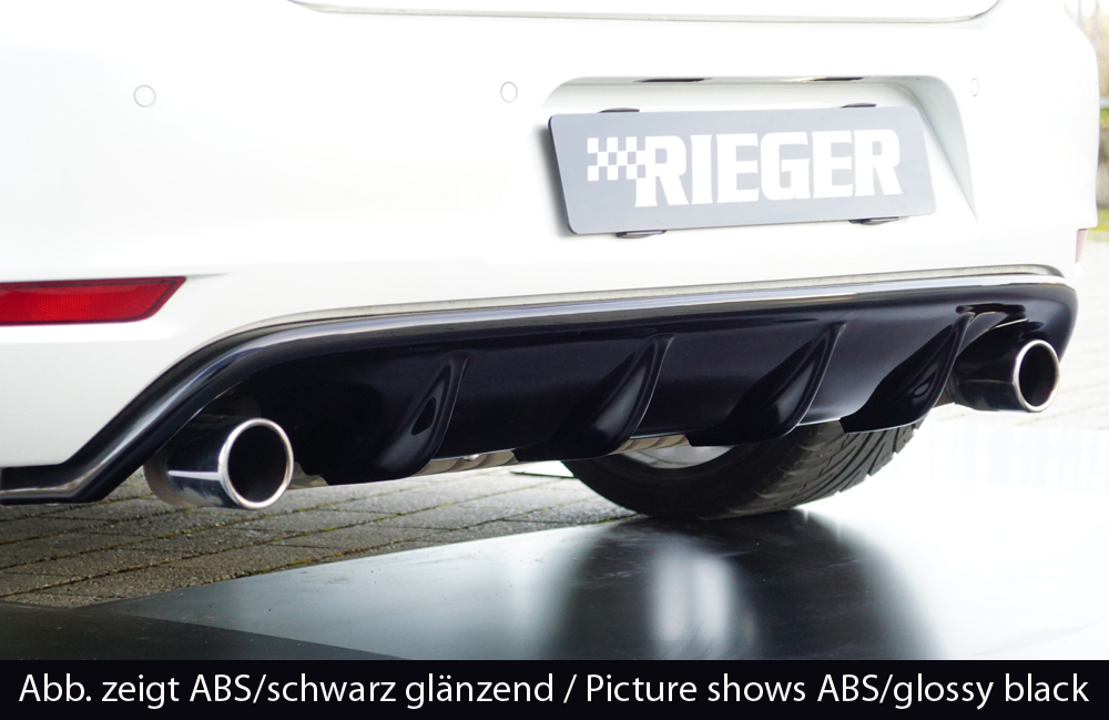 Der hochwertige Rieger Heckeinsatz passend für VW Golf 6 GTI 3-tür. überzeugt durch präzise Passform, modernes Design und langlebiges Material. Gefertigt aus robustem ABS-Kunststoff, bietet dieser Heckeinsatz eine sportliche Aufwertung des Hecks und sorgt für ein dynamisches Erscheinungsbild. Der Artikel ist für den originalen Endrohrverlauf links und rechts konzipiert und wird inklusive Montagezubehör geliefert. Dank beiliegendem Gutachten ist keine Eintragung erforderlich, wodurch die Montage schnell und unkompliziert erfolgen kann.