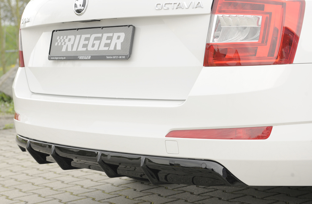 Der hochwertige Rieger Heckeinsatz aus robustem ABS-Material bietet eine perfekte optische Aufwertung des Hecks Ihres Skoda Octavia 5E Combi und überzeugt durch passgenaue Fertigung sowie sportliches Design. Er ist speziell passend für Skoda Octavia (5E) Combi 02.13–01.17 (vor Facelift) entwickelt und eignet sich sowohl für Fahrzeuge mit als auch ohne Anhängerkupplung oder Einparkhilfe (PDC).