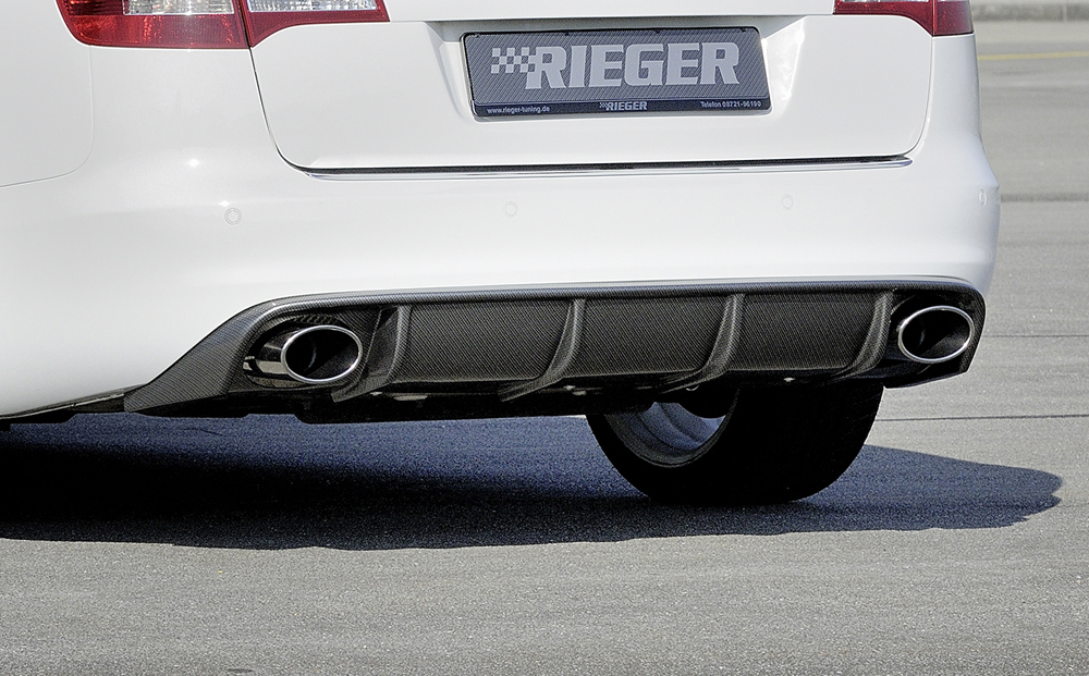 Der hochwertige Rieger Heckeinsatz aus robustem ABS Material wurde speziell passend für den Audi A6 (4F) Avant des Facelifts von 10/2008 bis 08/2011 entwickelt. Das aerodynamisch optimierte Design sorgt für einen sportlichen Abschluss am Heck Ihres Fahrzeugs und betont zugleich die Linienführung des Avant-Modells. Dank der passgenauen Fertigung und des beiliegenden Montagezubehörs lässt sich der Heckeinsatz präzise montieren.
