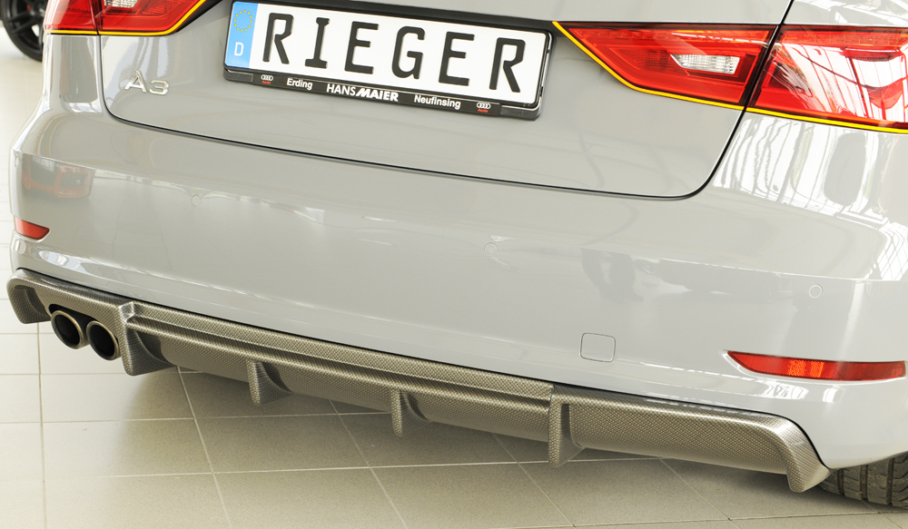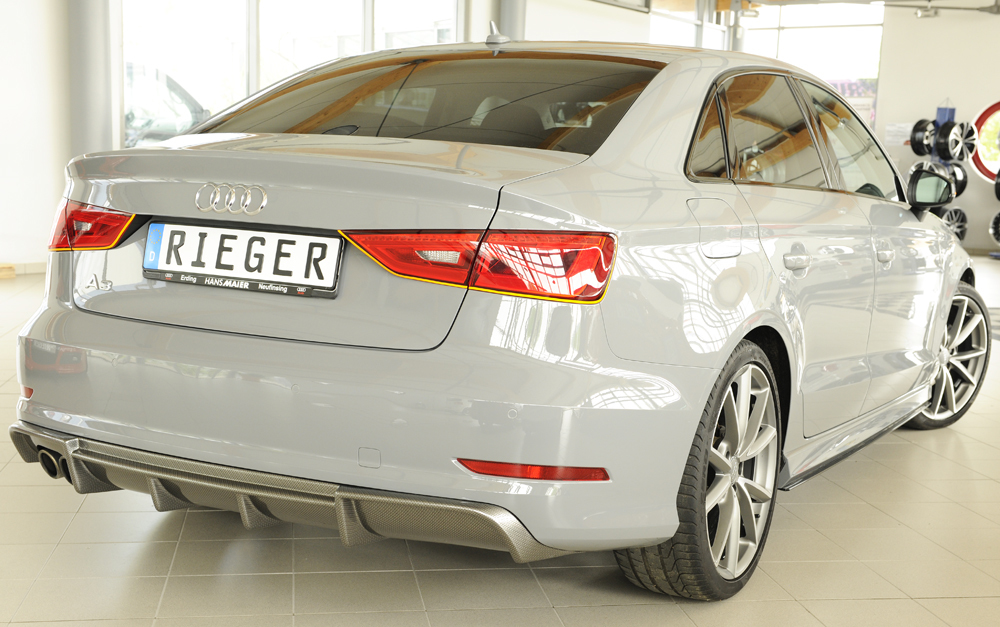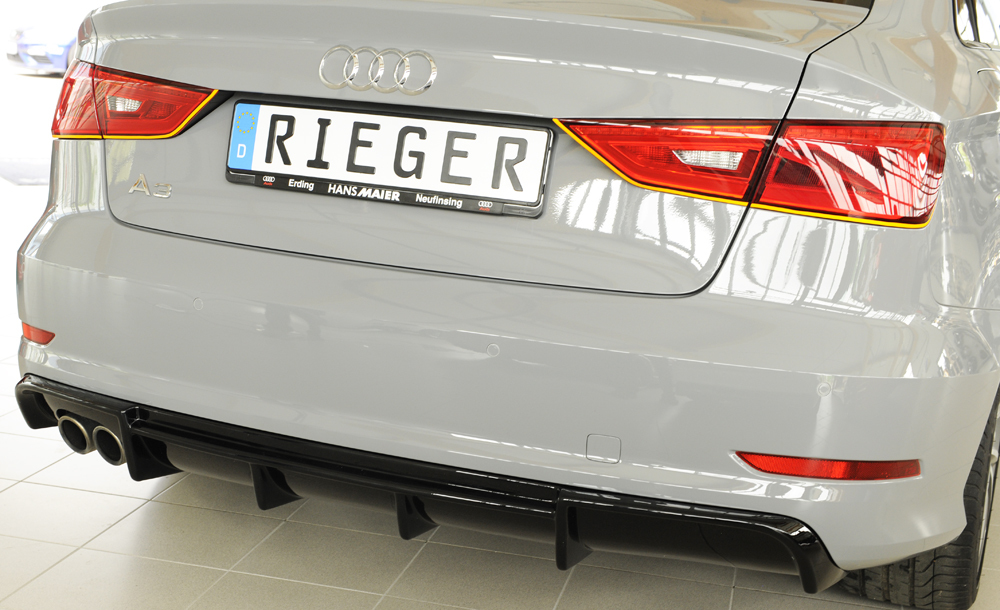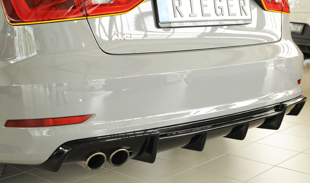 Der Rieger Heckeinsatz verleiht dem Audi A3 (8V) Limousine 8VS einen markanten, sportlichen Look. Hergestellt aus hochwertigem ABS überzeugt der Einsatz durch präzise Passform, Langlebigkeit und einfache Montage. Er ist speziell passend für Fahrzeuge mit S-Line Exterieur und für Doppelendrohr links ausgelegt. Sie können zwischen den Varianten Glanz Schwarz, Matt Schwarz und Carbon Look wählen, um die Optik perfekt an Ihr Fahrzeug anzupassen. Dank beiliegendem Gutachten ist keine Eintragung erforderlich – das Produkt wird eintragungsfrei geliefert. Bei unlackierten Ausführungen empfehlen wir eine Lackierung vor der Endmontage.
