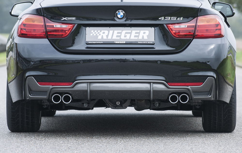 Der hochwertige Rieger Heckeinsatz aus robustem ABS-Material wurde speziell für das M-Paket des BMW 4er F33 Cabrio LCI entwickelt. Er überzeugt durch präzise Passform und sportliche Optik. Der Einsatz verfügt über Gittereinsätze links und rechts, ist für Doppelendrohranlagen (4x76 mm Ø) ausgelegt und wird eintragungsfrei mit Gutachten geliefert. Erhältlich in den Varianten Glanz Schwarz und Carbon Look fügt sich der Heckeinsatz harmonisch in das Fahrzeugdesign ein und betont die sportliche Linie Ihres Cabrios. Dank der mitgelieferten Alugitter und dem vollständigen Montagezubehör gelingt die Installation schnell und passgenau. Bitte beachten Sie, dass unlackierte Varianten vor der Endmontage lackiert werden müssen.