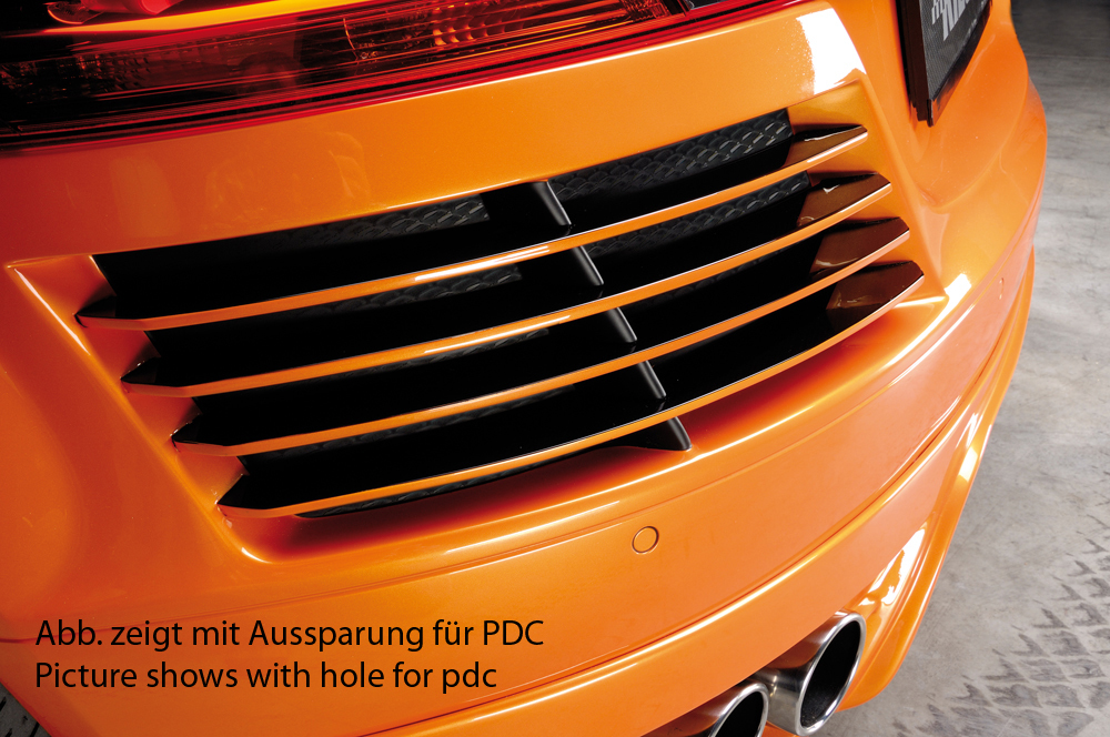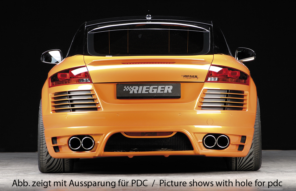 Die hochwertige Rieger Heckschürze passend für Audi TT (8J) Roadster ab 09/2006 überzeugt durch präzise Passform, sportliches Design und robuste Verarbeitung aus ABS-Kunststoff. Sie ist für Modelle mit Doppelendrohr links und rechts geeignet und wertet das Heck des Fahrzeugs optisch wie funktional auf. Durch das mitgelieferte Alugitter wird ein sportlicher Look erzielt, während die widerstandsfähige ABS-Oberfläche für Langlebigkeit und Stabilität sorgt.