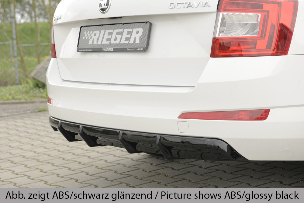 Der Rieger Heckeinsatz aus robustem ABS-Material bietet eine sportliche und elegante Aufwertung des Hecks Ihres Fahrzeugs. Entwickelt für eine perfekte Passform, ist dieser Heckansatz speziell passend für Skoda Octavia (5E) Limousine ab 02/2013 bis 01/2017. Die einzigartige Linienführung betont das Design des Fahrzeugs und sorgt für eine dynamische Optik. Wählen Sie zwischen den attraktiven Varianten Carbon Look, Glanz Schwarz und Matt Schwarz, um das Erscheinungsbild individuell an Ihren Geschmack anzupassen.