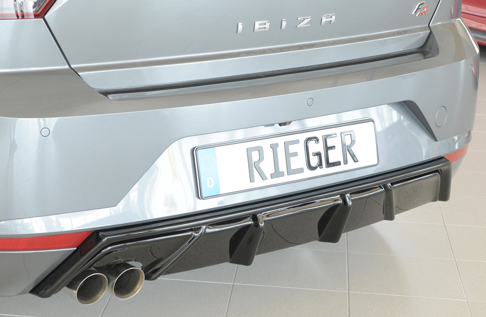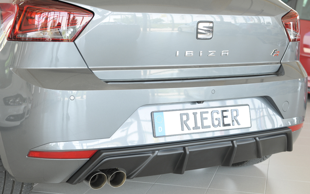 Der hochwertige Rieger Heckeinsatz aus robustem ABS-Material ist die ideale Ergänzung zur sportlichen Aufwertung des Hecks Ihres Fahrzeugs. Der Heckeinsatz ist speziell passend für Seat Ibiza (KJ) 5-türig ab 01/2017 entwickelt und überzeugt durch präzise Passform und einfache Montage. Er verfügt über eine Endrohraussparung für den Sport-Endschalldämpfer auf der linken Seite (2x76 mm Durchmesser).