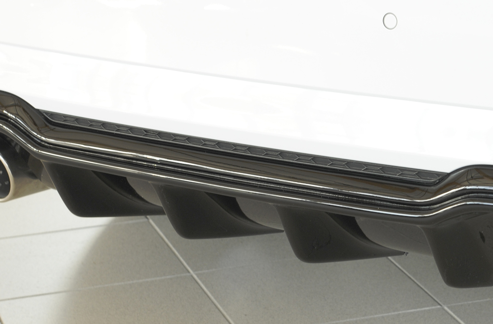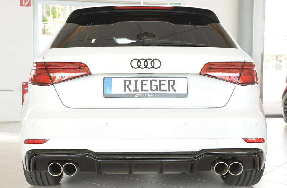 Der hochwertige Rieger Heckeinsatz aus robustem ABS-Kunststoff wurde speziell für den Audi A3 (8V) Sportback ab dem Facelift 09/2016 mit S-Line Exterieur entwickelt. Die sportliche Optik betont die Heckpartie und sorgt für ein dynamisches Erscheinungsbild. Der Heckeinsatz ist für Fahrzeuge mit Doppelendrohr links und rechts (4x90 mm Ø) konzipiert und überzeugt durch seine passgenaue Verarbeitung. Sie erhalten den Artikel wahlweise in den attraktiven Oberflächenvarianten Matt Schwarz oder Glanz Schwarz. Das mitgelieferte Gutachten ermöglicht eine eintragungsfreie Montage, wodurch Ihnen zusätzlicher Aufwand erspart bleibt. Dank des enthaltenen Montagezubehörs ist der Einbau unkompliziert und präzise möglich. Bitte beachten Sie, dass unlackierte Ausführungen vor der Endmontage lackiert werden müssen, sofern sie nicht mit einer Finish-Oberfläche (schwarz-glänzend oder schwarz-matt) versehen sind.
