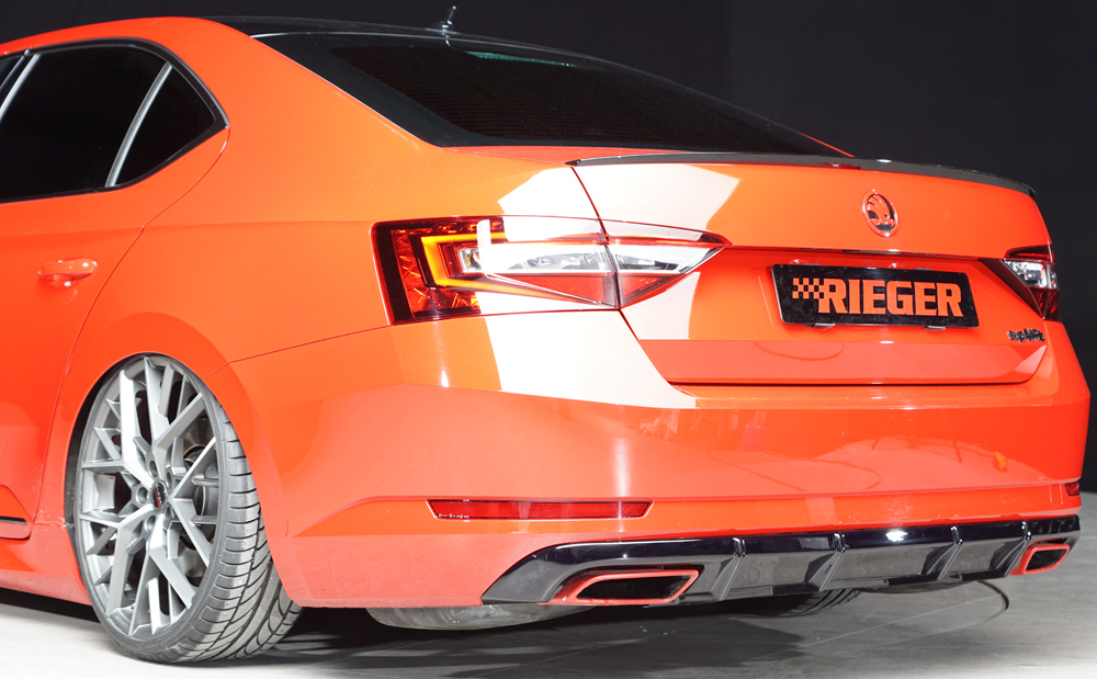 Der hochwertige Rieger Heckeinsatz aus strapazierfähigem ABS ist speziell passend für den Skoda Superb III (3T/3V) Combi ab Facelift 08/2019 entwickelt. Er ist in den Varianten Matt Schwarz und Glanz Schwarz erhältlich und bietet eine sportliche Aufwertung des Hecks, abgestimmt auf das Original-Design des Fahrzeugs.