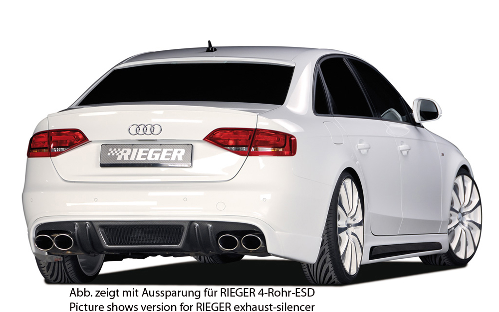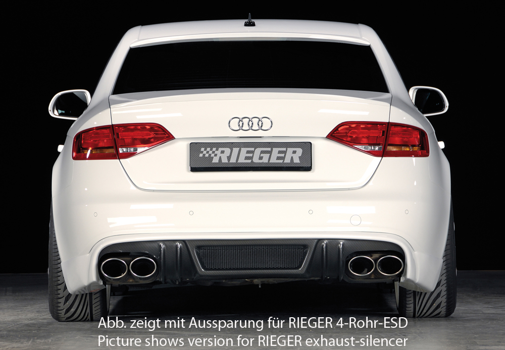 Der hochwertige Rieger Heckschürzenansatz aus robustem ABS-Material verleiht Ihrem Fahrzeug eine sportive und individuelle Optik. Das aerodynamisch optimierte Design sorgt nicht nur für eine dynamische Fahrzeuglinie, sondern betont gleichzeitig den sportlichen Charakter Ihres Fahrzeugs. Der Ansatz wird inklusive Alugitter, Montagezubehör und Gutachten geliefert, sodass eine einfache und sichere Montage gewährleistet ist. Sie haben die Wahl zwischen den Varianten Matt Schwarz und Carbon Look, wodurch Sie den Look individuell an Ihr Fahrzeug anpassen können. Der Artikel wird eintragungsfrei mit Gutachten geliefert, eine Eintragung ist nicht erforderlich. Bitte beachten Sie, dass Artikel in PUR, GFK oder ABS unlackiert geliefert werden und eine Lackierung vor Montage erforderlich ist. Varianten mit schwarzem Finish müssen dagegen nicht lackiert werden.