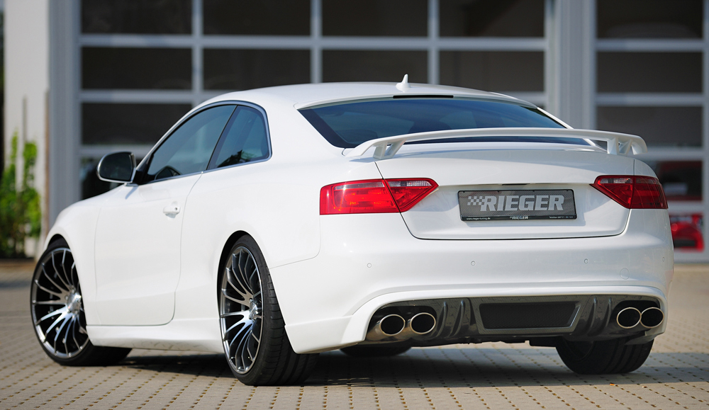 Der hochwertige Rieger Heckflügel passend für Audi A5 S5 (B8/B81) Cabrio setzt ein markantes sportliches Statement und optimiert gleichzeitig die Aerodynamik Ihres Fahrzeugs. Gefertigt aus strapazierfähigem PUR-Material bietet dieser Flügel eine hervorragende Passgenauigkeit und lange Lebensdauer. Die Lieferung erfolgt inklusive Montagezubehör und allgemeiner Betriebserlaubnis (ABE), wodurch keine Eintragung erforderlich ist.