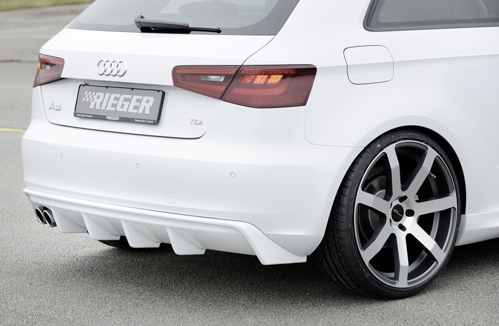 Der hochwertige Rieger Heckeinsatz aus strapazierfähigem ABS-Kunststoff überzeugt durch präzise Passform und sportliches Design, passend für Audi A3 (8V) Sportback. Der Diffusoreinsatz ist perfekt auf die Fahrzeugkonturen abgestimmt und wird montagefertig inklusive Gutachten geliefert. Die Varianten Carbon Look und Matt Schwarz bieten Ihnen individuelle Gestaltungsmöglichkeiten, um das Heck Ihres Fahrzeugs optisch aufzuwerten. Dank der robusten ABS-Ausführung ist der Heckeinsatz langlebig, stoßfest und witterungsbeständig. Das Produkt wird unlackiert geliefert – eine Lackierung ist vor der Endmontage erforderlich, sofern keine Finish-Oberfläche (wie bei ABS/schwarz-glänzend oder ABS/schwarz-matt) gewählt wurde.