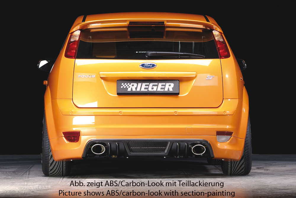Der Rieger Heckschürzenansatz sorgt für eine markante Aufwertung des Fahrzeughecks und harmoniert perfekt mit der Linienführung des Ford Focus 2. Die unlackierte ABS-Oberfläche kann nach Wunsch lackiert werden, um sich ideal an die Fahrzeugfarbe anzupassen. Varianten mit schwarzem Finish benötigen keine Lackierung und sind sofort einsatzbereit.