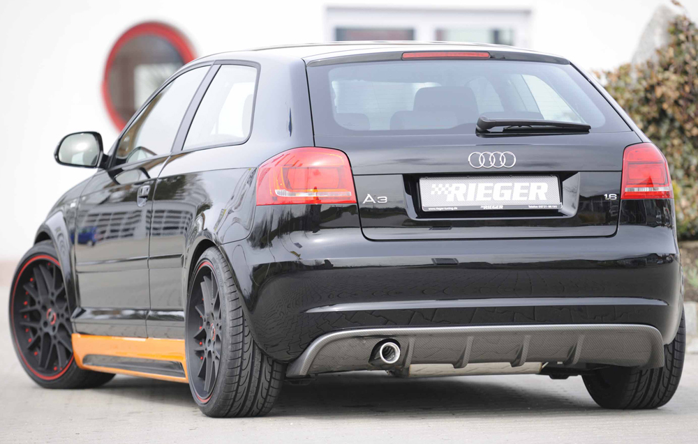 Der hochwertige Rieger Heckeinsatz passend für Audi A3 (8P) 3-türig ab Facelift 07/2008 überzeugt durch seine präzise Passform und sportliche Optik. Gefertigt aus robustem ABS-Kunststoff bietet er eine hohe Formstabilität, ist witterungsbeständig und langlebig. Der Heckeinsatz wird unlackiert geliefert und kann problemlos in Ihrer Wunschfarbe lackiert werden. Alternativ stehen Ausführungen mit schwarzer Oberfläche (glänzend oder matt) zur Verfügung, die nicht mehr lackiert werden müssen.