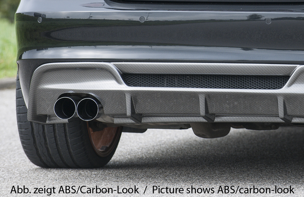 Der hochwertige Rieger Heckeinsatz aus robustem ABS-Material wurde speziell für die sportliche Optik Ihres Fahrzeugs entwickelt. Dieser Heckeinsatz ist passend für BMW 1er E82 und E88 Cabrio Modelle ab Baujahr 10/2007 mit M-Technik. Durch das präzise Design fügt sich der Heckeinsatz harmonisch in die Fahrzeuglinie ein und sorgt für eine markante Heckansicht. Dank der passgenauen Fertigung und des mitgelieferten Montagezubehörs ist die Installation besonders einfach. Die Varianten Carbon Look, Glanz Schwarz und Matt Schwarz bieten Ihnen die Möglichkeit, das Erscheinungsbild nach Ihren Vorlieben zu gestalten. Der Artikel wird inklusive Alugitter geliefert und ist mit Gutachten eintragungsfrei. Bitte beachten Sie: Der Einbau ist nur in Verbindung mit dem Rieger 4-Rohr-Endschalldämpfer (00303359) möglich. Artikel mit Oberflächen in ABS/schwarz-glänzend oder ABS/schwarz-matt besitzen ein Finish, eine Lackierung ist nicht erforderlich. Teile in ABS, GFK, PUR oder ABS/Carbon-Look werden unlackiert geliefert und müssen vor der Endmontage lackiert werden.
