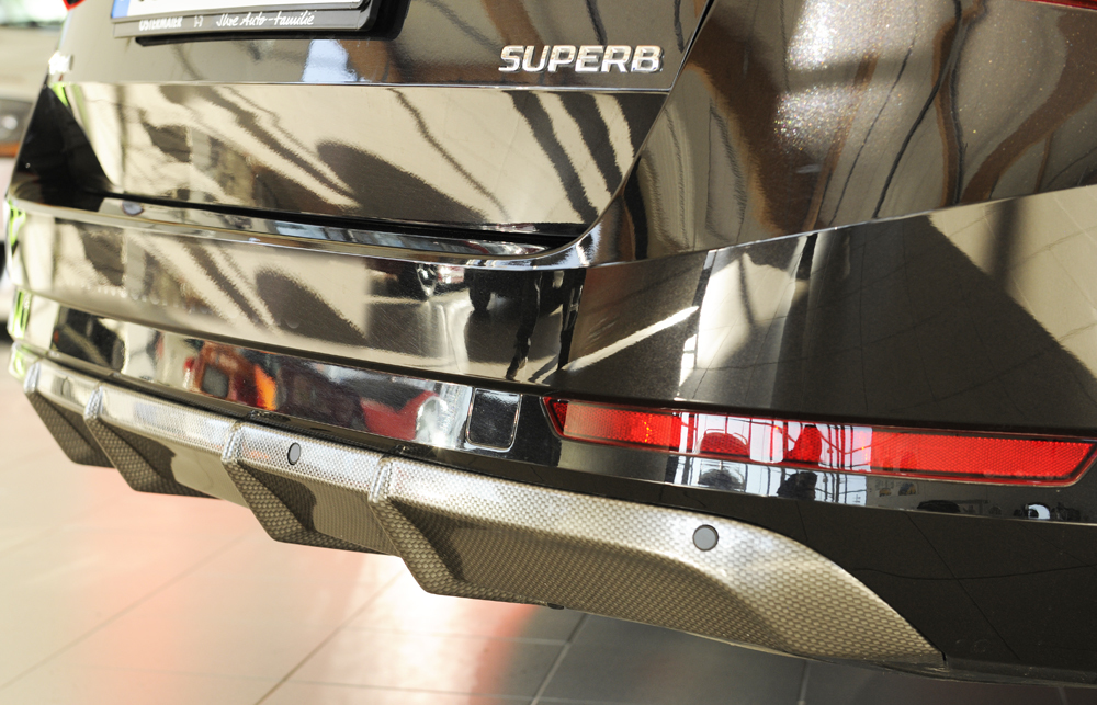 Der Rieger Heckeinsatz aus hochwertigem ABS-Material sorgt für eine sportliche Heckoptik Ihres Fahrzeugs und überzeugt durch exzellente Passgenauigkeit. Das Modell ist speziell passend für Skoda Superb III (3T/3V) Limousine ab Baujahr 11/2018 bis 07/2019 entwickelt. Er ist für Fahrzeuge mit Einparkhilfe (PDC) konzipiert und wird inklusive Montagezubehör und Gutachten geliefert. Die Ausführung ist ohne Aussparung für Endrohrblenden, sodass die Abgase bei dieser Variante nach unten abgeführt werden. Der Heckeinsatz ist für Fahrzeuge mit sensorgesteuerter Heckklappe sowie Sportline- und Greenline-Ausführungen geeignet, jedoch nicht für Modelle mit Anhängerkupplung oder 2.0 TSI (206 kW).