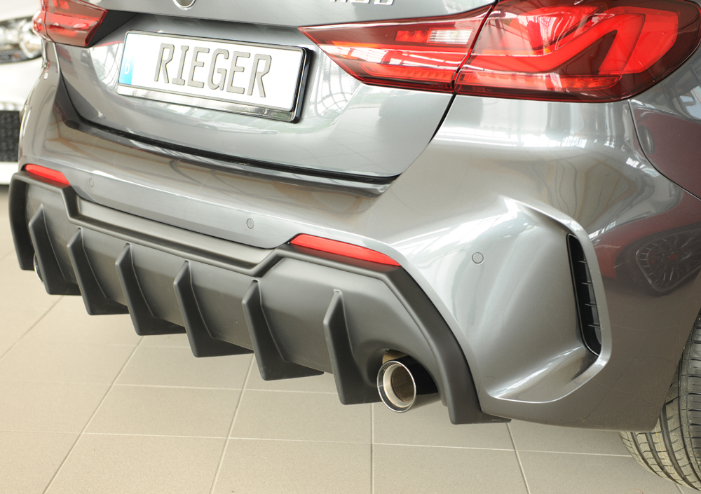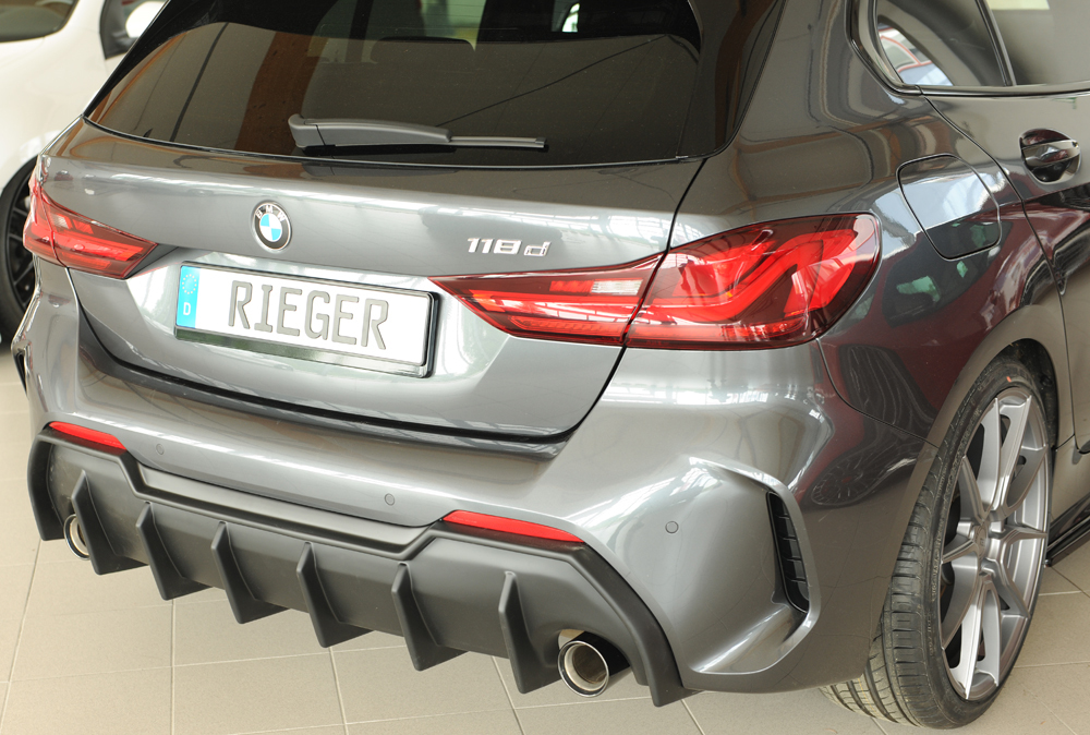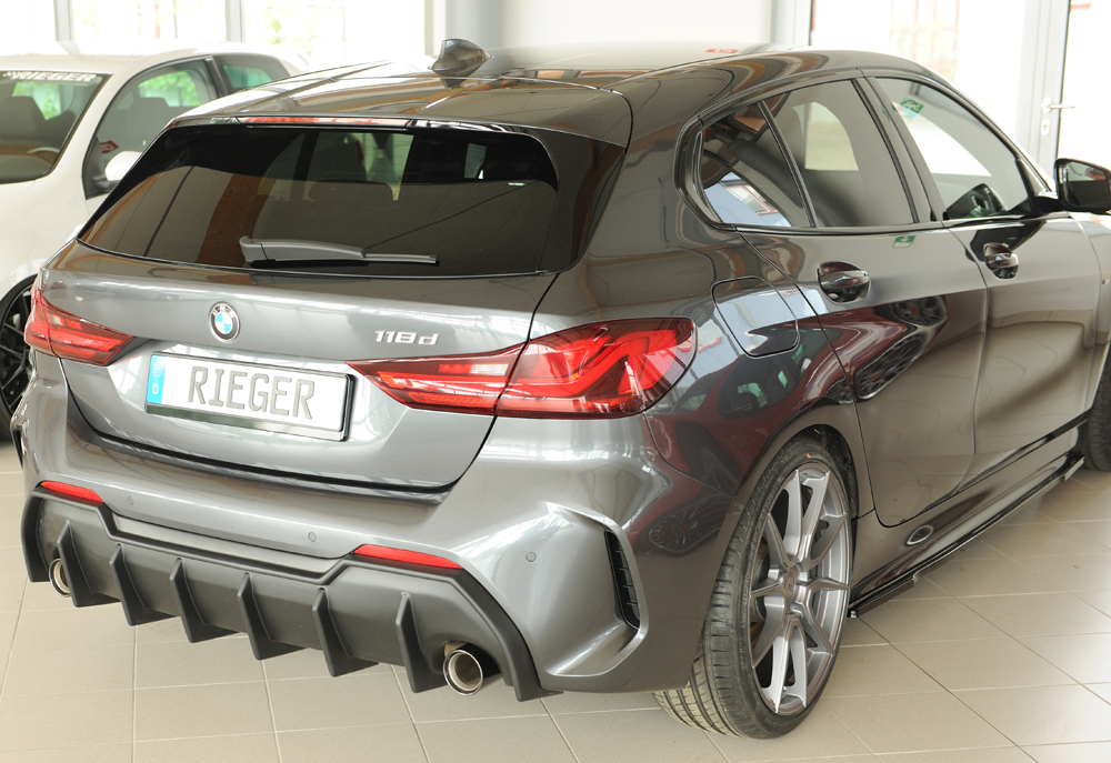 Der Rieger Heckeinsatz wurde speziell für Fahrzeuge mit M-Sport-Paket entwickelt und überzeugt durch präzise Passform und sportliches Design. Gefertigt aus robustem ABS, bietet er eine langlebige und passgenaue Lösung für die Heckgestaltung Ihres BMW 1er F40. Die Varianten Matt Schwarz und Glanz Schwarz ermöglichen eine individuelle optische Abstimmung auf das Gesamtfahrzeug. Das Produkt beinhaltet ein vollständiges Montagezubehör sowie ein Gutachten, wodurch keine Eintragung erforderlich ist. So verleihen Sie Ihrem Fahrzeug eine markante und hochwertige Heckoptik – kombiniert mit einfacher und sicherer Montage.
