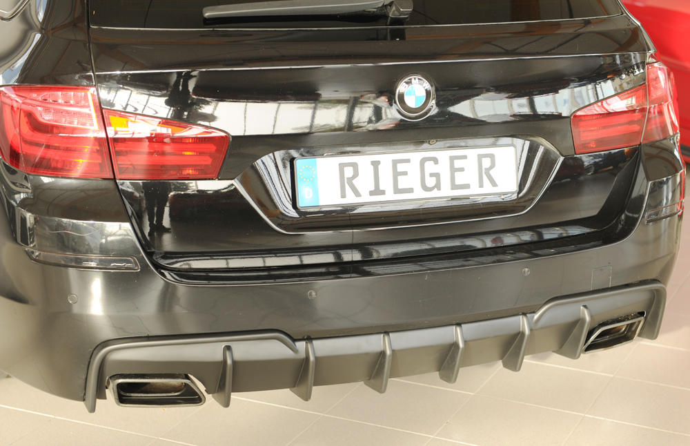 Der hochwertige Rieger Heckeinsatz aus robustem ABS überzeugt durch präzise Passform und sportliches Design, passend für BMW 5er F10 Limousine mit M-Sport-Paket (Baujahr 03/2010–06/2013, bis Facelift). Dieses Tuning-Teil ist speziell konstruiert, um die originale M-Sport-Heckschürze optisch aufzuwerten und für ein markantes Heck zu sorgen. Er ist für Fahrzeuge mit und ohne Anhängekupplung geeignet und enthält alle notwendigen Montagekomponenten sowie ein Gutachten, sodass keine Eintragung erforderlich ist.