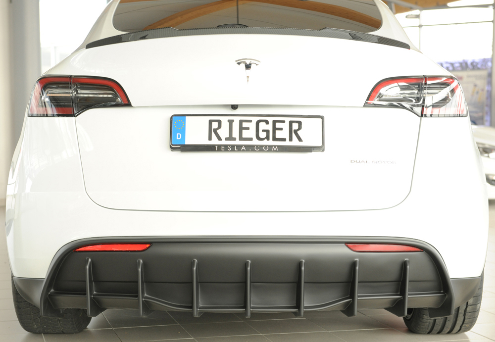 Der hochwertige Rieger Heckeinsatz aus robustem ABS-Kunststoff verleiht Ihrem Tesla Model Y eine sportlich-markante Heckansicht und sorgt zugleich für eine perfekte Integration an der originalen Heckschürze. Dank präziser Passform und der Konstruktion für Fahrzeuge mit Anhängerkupplung ist keine Anpassung erforderlich. Der Heckeinsatz ist in den Ausführungen Matt Schwarz und Glanz Schwarz erhältlich und wird inklusive Montagezubehör geliefert. Das beiliegende Gutachten macht den Artikel eintragungsfrei – es ist keine gesonderte TÜV-Eintragung notwendig. Für die Varianten in PUR, GFK, ABS oder ABS/Carbon-Look ist vor der Endmontage eine Lackierung erforderlich. Versionen mit ABS/schwarz-glänzend oder -matt besitzen bereits eine hochwertige Finish-Oberfläche und müssen nicht mehr lackiert werden. So kombinieren Sie sportliches Design, einfache Montage und rechtliche Sicherheit in einem Produkt.