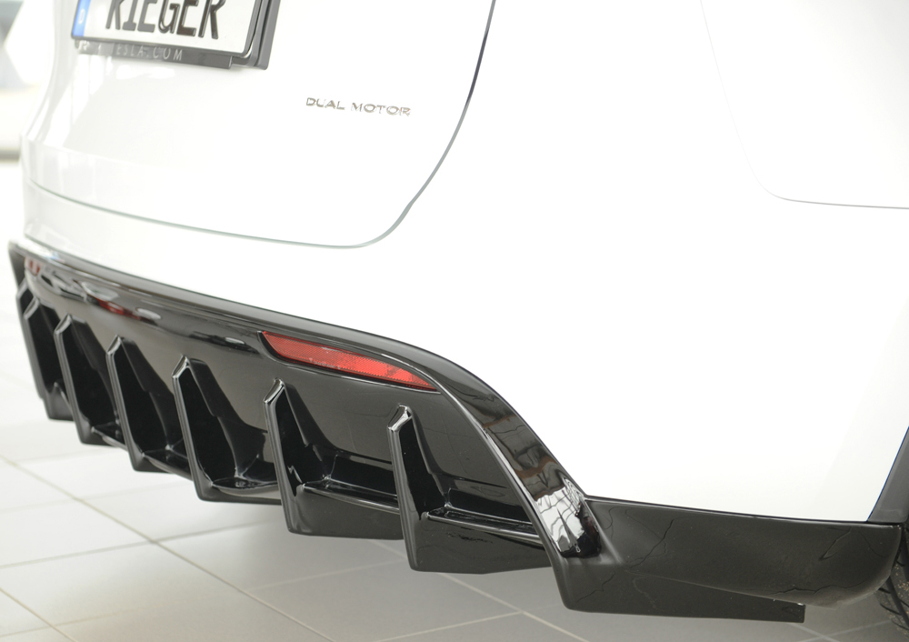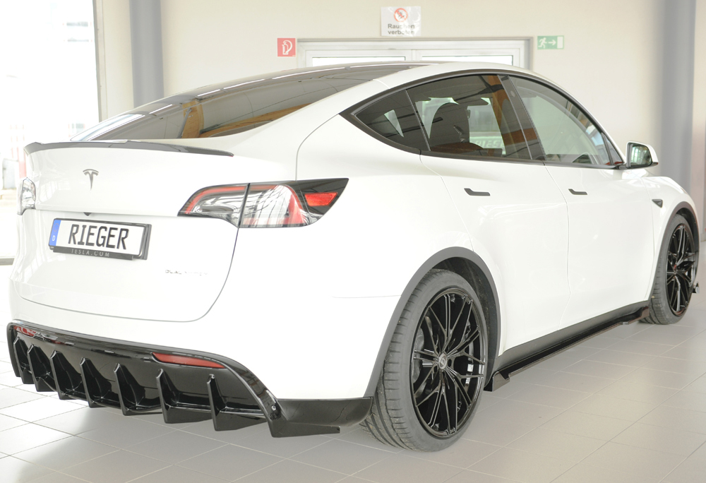 Der hochwertige Rieger Heckeinsatz aus robustem ABS-Kunststoff verleiht Ihrem Tesla Model Y eine sportlich-markante Heckansicht und sorgt zugleich für eine perfekte Integration an der originalen Heckschürze. Dank präziser Passform und der Konstruktion für Fahrzeuge mit Anhängerkupplung ist keine Anpassung erforderlich. Der Heckeinsatz ist in den Ausführungen Matt Schwarz und Glanz Schwarz erhältlich und wird inklusive Montagezubehör geliefert. Das beiliegende Gutachten macht den Artikel eintragungsfrei – es ist keine gesonderte TÜV-Eintragung notwendig. Für die Varianten in PUR, GFK, ABS oder ABS/Carbon-Look ist vor der Endmontage eine Lackierung erforderlich. Versionen mit ABS/schwarz-glänzend oder -matt besitzen bereits eine hochwertige Finish-Oberfläche und müssen nicht mehr lackiert werden. So kombinieren Sie sportliches Design, einfache Montage und rechtliche Sicherheit in einem Produkt.
