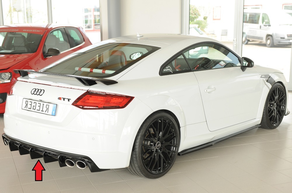 Der Rieger Heckeinsatz aus hochwertigem ABS-Material überzeugt durch seine präzise Passform und sportliche Optik. Er wurde speziell passend für Audi TT (8J-FV/8S) Roadster ab 09/2018 entwickelt und harmoniert ideal mit dem S-Line Exterieur. Diese hochwertige Verkleidung sorgt für eine markante Heckansicht im TTS-Look mit 4-Rohr-Sport-Endschalldämpfer (4x100x81 mm oval).