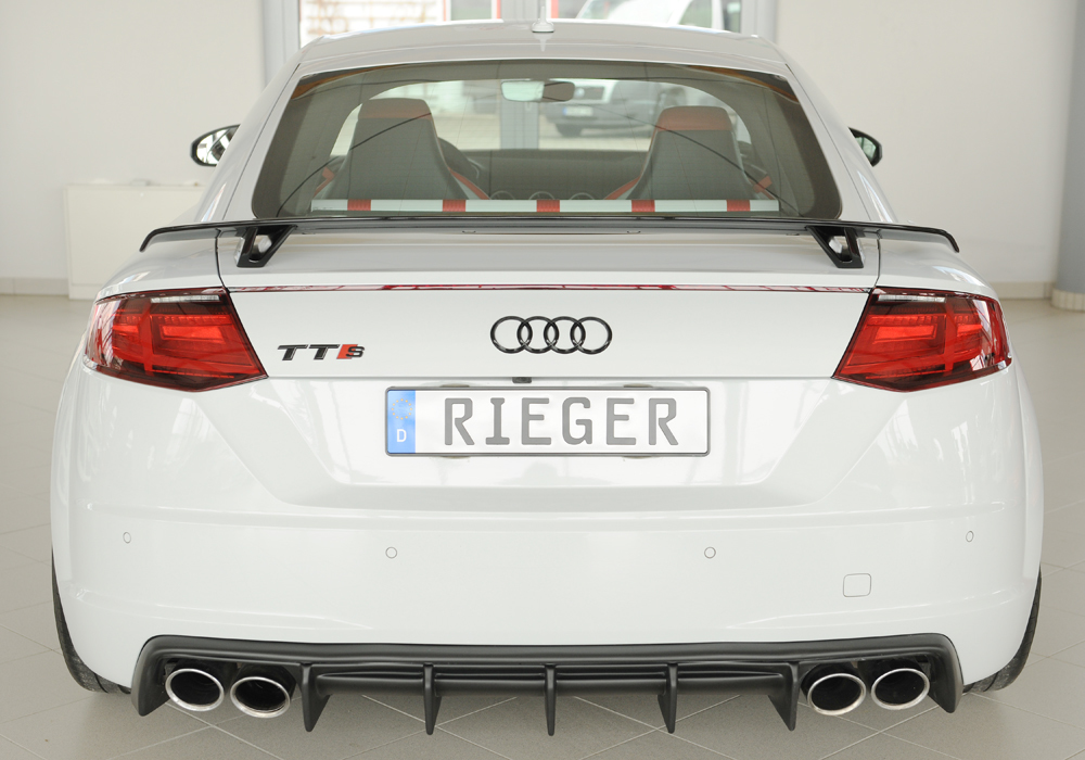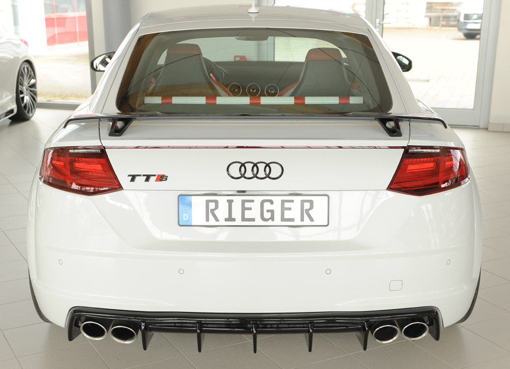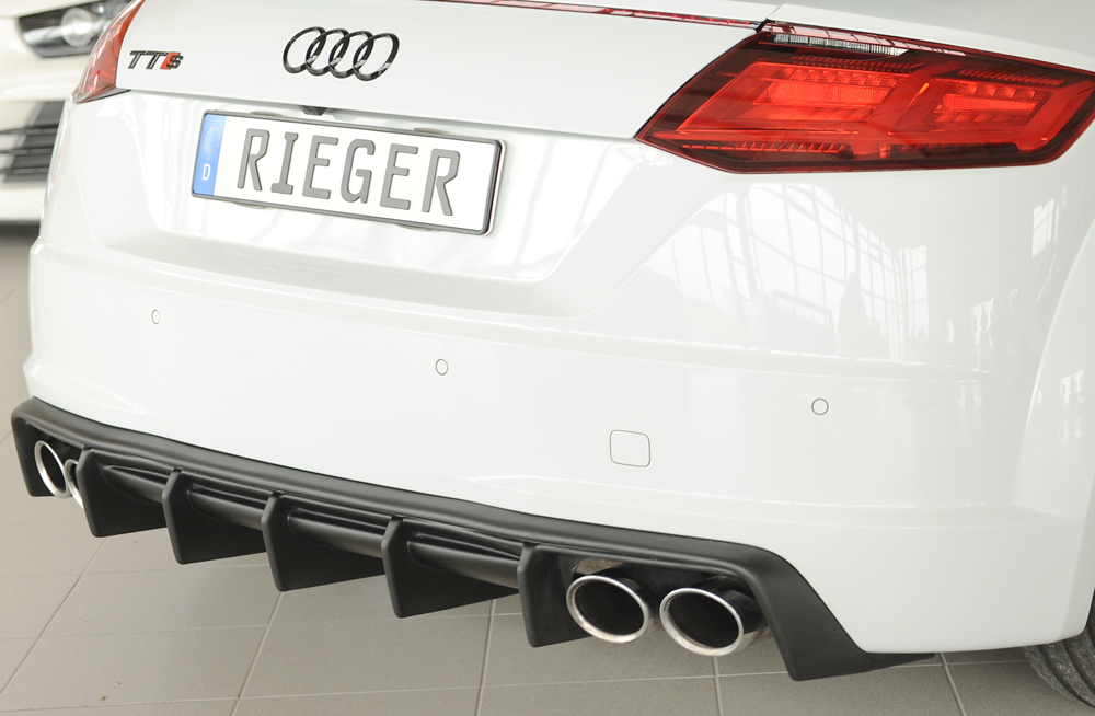 Der Rieger Heckeinsatz verleiht Ihrem Fahrzeug ein sportlich-dynamisches Erscheinungsbild und sorgt für eine markante Heckoptik. Gefertigt aus robustem ABS-Kunststoff vereint dieser Heckeinsatz hohe Stabilität mit geringem Gewicht. Er ist speziell passend für Audi TTS (8J-FV/8S) Roadster von Baujahr 07/2014 bis 08/2018 konzipiert und eignet sich ideal für Fahrzeuge mit S-Line Exterieur oder S-Line Competition.