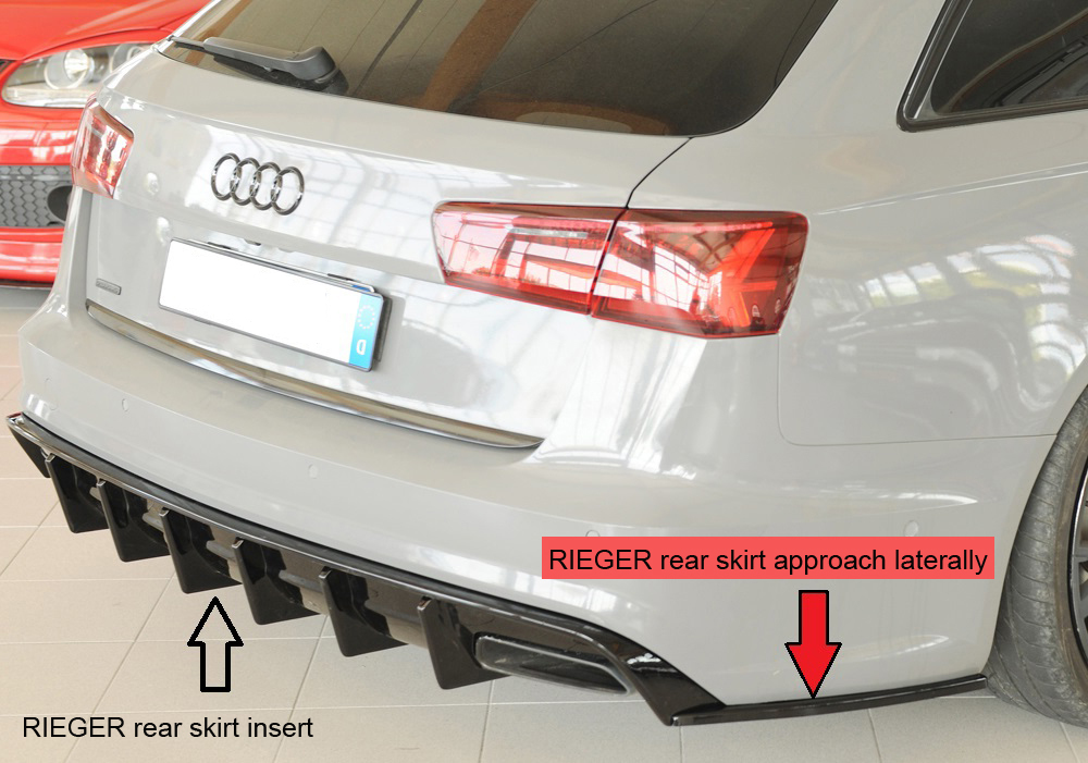 Der hochwertige Rieger Heckschürzenansatz seitlich rechts wurde speziell für die originale S-Line Heckschürze entwickelt und ist passend für Audi A6 S6 (4G/C7) Avant ab Baujahr 09/2014 (Facelift). Gefertigt aus robustem ABS-Material, überzeugt er durch exakte Passform, hohe Stabilität und eine sportliche Optik. Der Artikel wird inklusive Montagezubehör und Gutachten geliefert – eine Eintragung ist somit nicht erforderlich. Für die Optik stehen Ihnen je nach Ausführung die Varianten Unlackiert oder Glanz Schwarz zur Verfügung. Die unlackierte Ausführung kann individuell in Wagenfarbe oder Kontrastfarbtönen lackiert werden, während die glänzende Variante mit fertigem Finish geliefert wird. Bitte beachten Sie, dass ABS-, GFK- oder PUR-Teile unlackiert geliefert werden und vor der Endmontage lackiert werden müssen, sofern sie nicht in einer Finish-Oberfläche gefertigt sind.