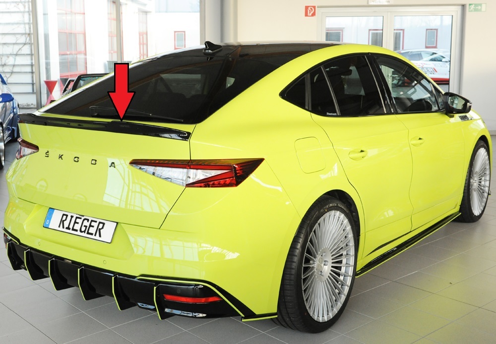 Der Rieger Heckklappenspoiler aus hochwertigem ABS verleiht dem Skoda Enyaq iV Coupé (NY) eine sportlich-dynamische Heckansicht und verbessert gleichzeitig die Aerodynamik Ihres Fahrzeugs. Er ist präzise gefertigt und überzeugt durch optimale Passgenauigkeit sowie langlebige Materialqualität. Der Spoiler wird mit ABE geliefert und ist somit eintragungsfrei. Die Variante Unlackiert ist ideal für eine individuelle Farbgestaltung, während die Option Glanz Schwarz mit einer hochwertigen Finish-Oberfläche sofort montagefertig ist.