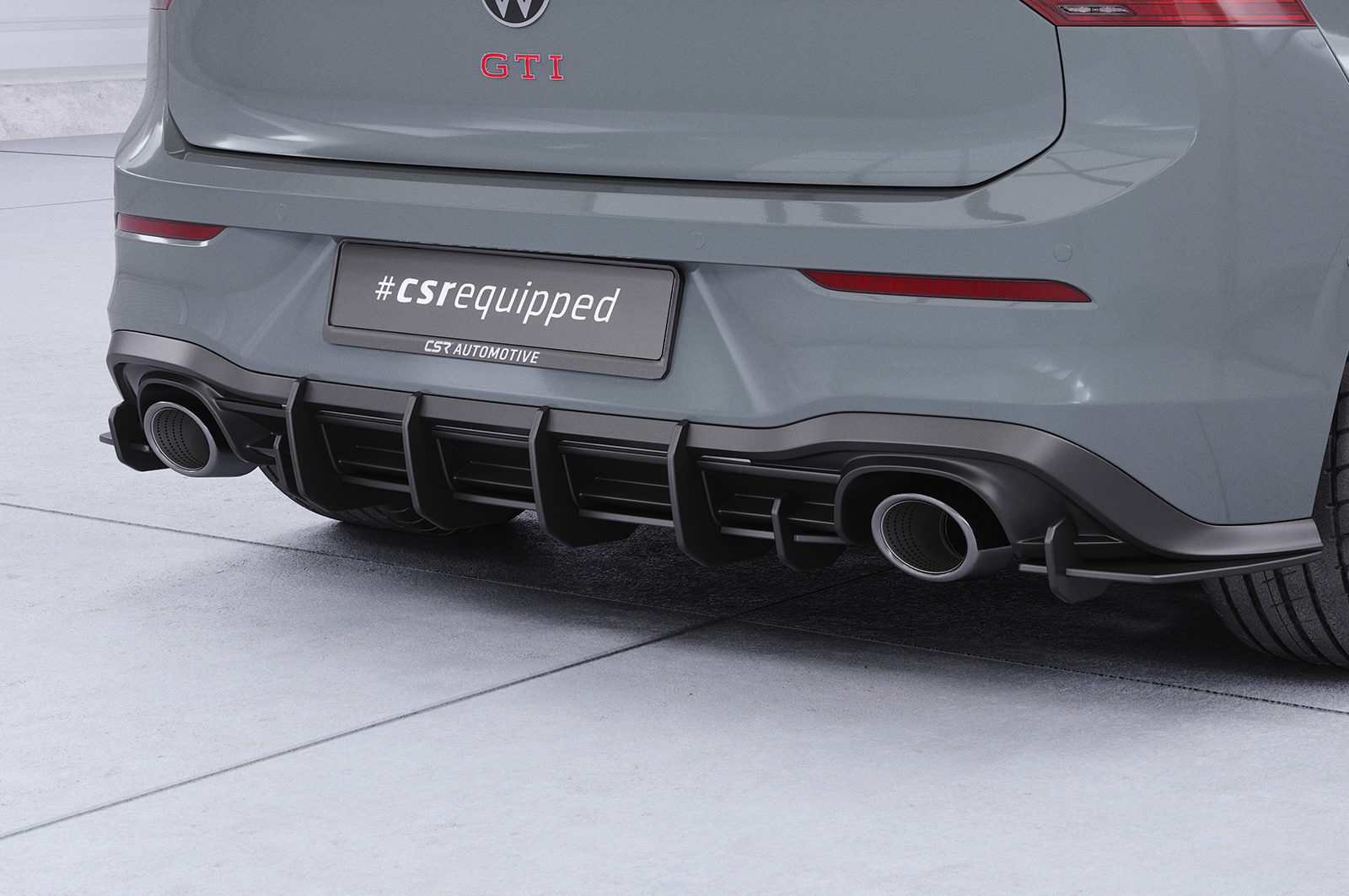 Der Racing Diffusor / Heckansatz passend für VW Golf 8 (Typ CD) GTI Clubsport verleiht Ihrem Fahrzeug eine markante, sportliche Optik und verbessert die Aerodynamik im Heckbereich. Der Heckansatz wird aus hochwertigem, 10 mm starkem ABS-Kunststoff in mattschwarzer Ausführung gefertigt. Dieses Material überzeugt durch hohe Stabilität, Langlebigkeit und Witterungsbeständigkeit. Dank präziser CNC-Bearbeitung ist eine exzellente Passgenauigkeit gewährleistet.