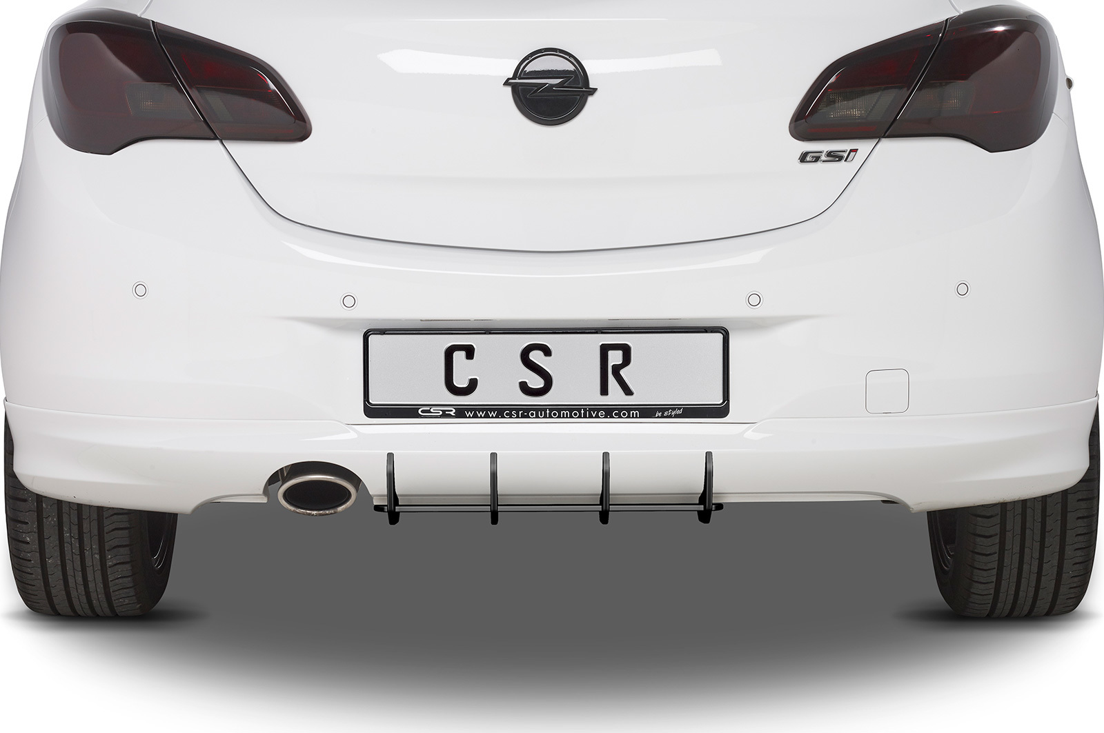 Der Racing Diffusor bzw. Heckansatz passend für Opel Corsa E GSi verleiht Ihrem Fahrzeug eine markante, sportliche Optik und optimiert zugleich das aerodynamische Design des Hecks. Dieses hochwertige Bauteil wurde präzise für die Modellreihe von 06/2018 bis 06/2019 entwickelt und überzeugt durch eine exzellente Passform sowie eine unkomplizierte Montage an der originalen Heckstoßstange durch Verkleben und/oder Vernieten.